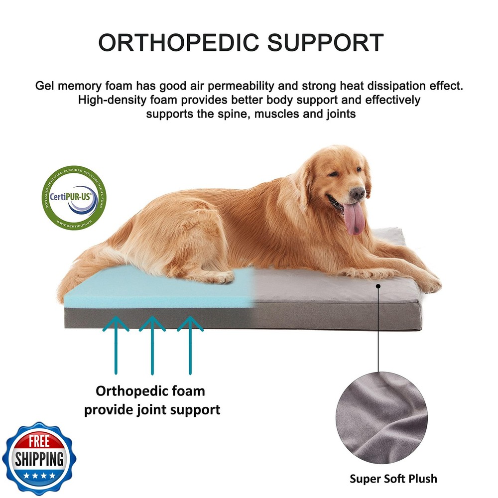GOHOO PET Orthopedic Memory Foam Dog Bed, Cooling Dog Beds Waterproof Pet Bed for Crate with Removable Washable Cover, L(35inch,65Lbs) Features CertiPUR-US Certified Foam: Gohoo Pet' dog bed is designed with cooling gel memory and high-density bamboo charcoal support foam, has a constant temperature effect, which can keep your dog warm in winter and cool in summer. High-density foam supports the dog's body and reduces joint pressure. Warm & Soft: Dogs directly contact the quality of soft fur fabric, soft and comfortable; allowing your dog to relax and rest well. Waterproof & Non-silp: Waterproof lining can effectively prevent liquid penetration and pollution inside; Non-slip bottom makes the dog bed can not easily move, and keep safe more. L-Shape Zipper:The zipper design of dog bed can remove the outer cover, which can be machine washable, convenient and easy to care for. It also hides the zipper to make the dog beds look nice. Size Information : Pick the perfect size for your love pet! Available in Medium (29" x 18" x 3”);Large (35”x 22”x 3”);X-Large (41" x 29" x 4”);XX-Large (50" x 34" x 5").Arrives as a vacuum-packed bed in a box, easily unzip and let it inflate for up to 72 hours! Shipping Free & Fast Shipping: We offer free shipping to most of the USA with a normal delivery time of 3-7 days. However, due to the current situation, additional delivery time (up to 3 weeks) may be required for some items. Alternative Carriers: We may use alternative carriers (e.g., USPS, FedEx, UPS) to ensure your package arrives safely and on time. Due to the use of multiple carriers, we are unable to provide a tracking number automatically. Handling Time: Orders are processed and shipped within 1-2 business days of receiving cleared payment. Shipping Restrictions: Shipping to Alaska, Hawaii, Puerto Rico, Guam, and other US territories may incur shipping charges or delivery restrictions. Please contact us before ordering, or your order can be refunded/cancelled. State Restrictions: Certain items may not be shipped to California due to state regulations. Contact for Tracking Updates: If you require tracking updates or have any concerns about the delivery of your order, please feel free to contact us, and we will be happy to assist you. Return Policy 30-Day Hassle-Free Returns: If you are not completely satisfied with your purchase, you can return the item for free within 30 days of receiving it for a full refund or exchange. Easy Return Process: Contact us, and we will provide you with a prepaid return shipping label and detailed instructions. No Restocking Fee: There are no restocking fees for returns. However, the buyer is responsible for return shipping costs if the return is not due to a seller"s error. Refund Processing: Refunds will be processed within 1 business day of receiving the returned item in its original condition. Feedback Your feedback is extremely important to us. We strive to provide the best products and customer service possible. If you are satisfied with your purchase, please take a moment to leave us a positive review. If you have any concerns or issues with your order, please contact us before leaving negative feedback. We are committed to resolving any problems and ensuring your satisfaction. Contact Us If you have any questions or concerns, please feel free to reach out to our customer support team. You can contact us through the eBay messaging system. We are available Monday to Friday, 9:00 am to 5:00 pm EST, and we will do our best to respond to your inquiry within 24 hours. Thank you for supporting our small family business!