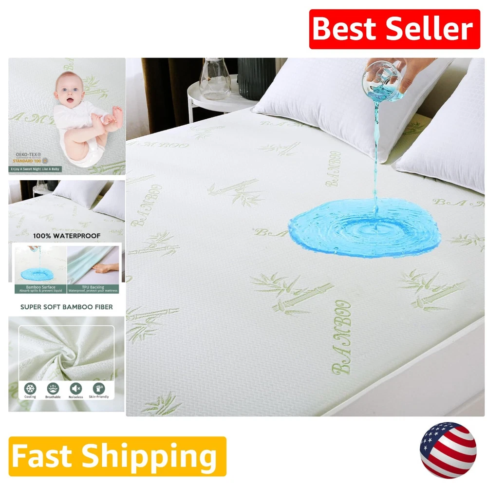 Cooling and Breathable Queen Mattress Protector - Waterproof Bamboo Cover