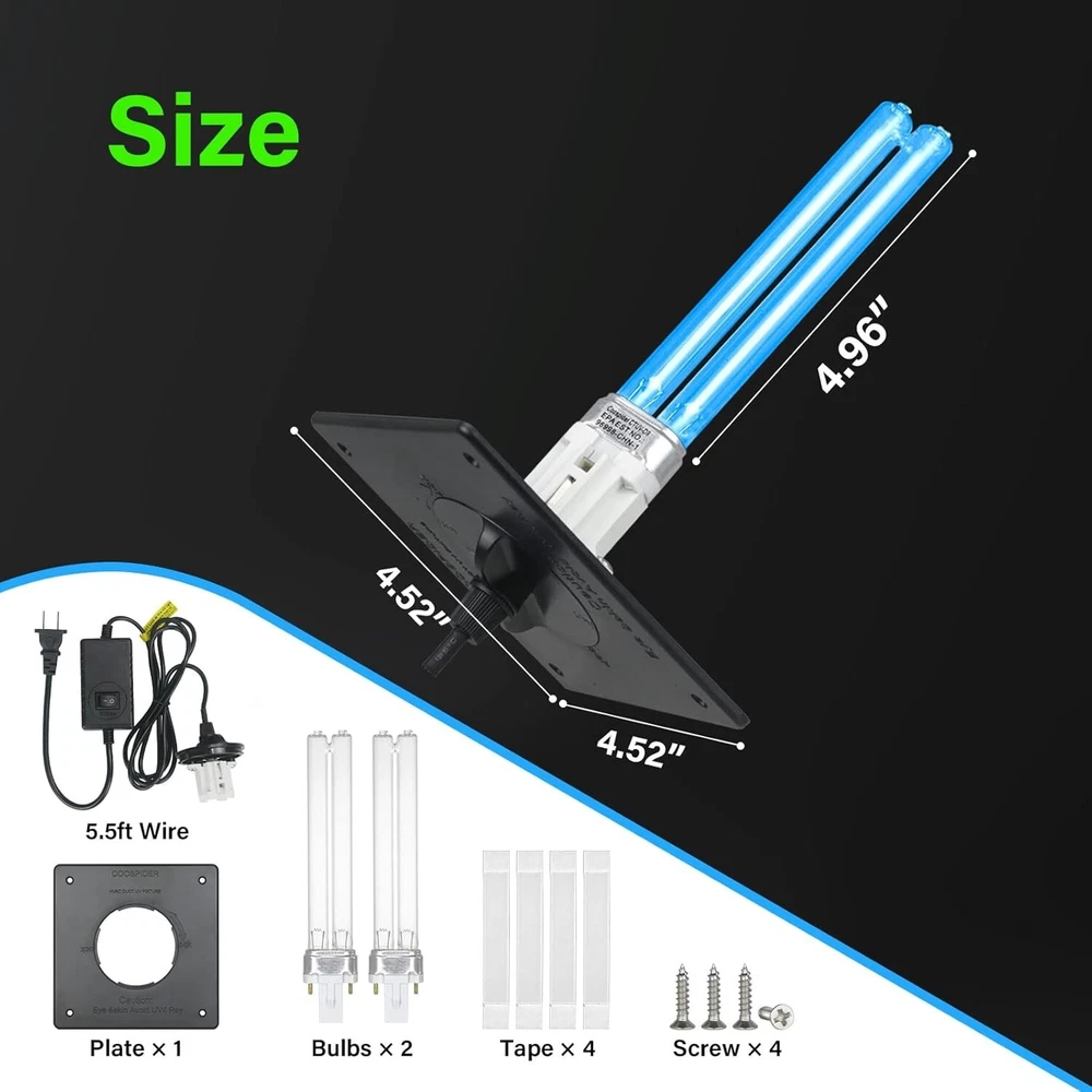 Filtration Technology: UV Light (Sterilizer) Power Source: Corded Electric Eu Energy Efficiency Label: Uv-c Light Efficiency, Air Purification Efficiency Filter Life: Washable/Reusable Type Of Bulb: Uv Control Style: Button Control Global Trade Identification Number: 16973937720505 Batteries Required?: No Type: Lamp Mounting: Duct Features: Quality Assurance, Wide Application, Use Friendly, Safety First Controller Type: Button Control Specific Uses: Hvac System Maintenance, Air Purification Filter Type: Uv Light Voltage: 110 V Brand: Unbranded Item Package Quantity: 1 Room: Any Room, Offices, Classrooms, Restaurants Contaminants Captured: Odors, Viruses Wattage: 9 Watts Application: Whole House, Public Places Shape: Tubular(t) Style: 9w Lamp Item Weight: 0.73 lb Power: 9 W UPC: Does not apply Specification Met: Epa Certified Package Dimensions: 7.44 X 4.88 X 2.76 Inches Material: Quartz Glass Included Components: Spare Bulb gtin13: Does not apply