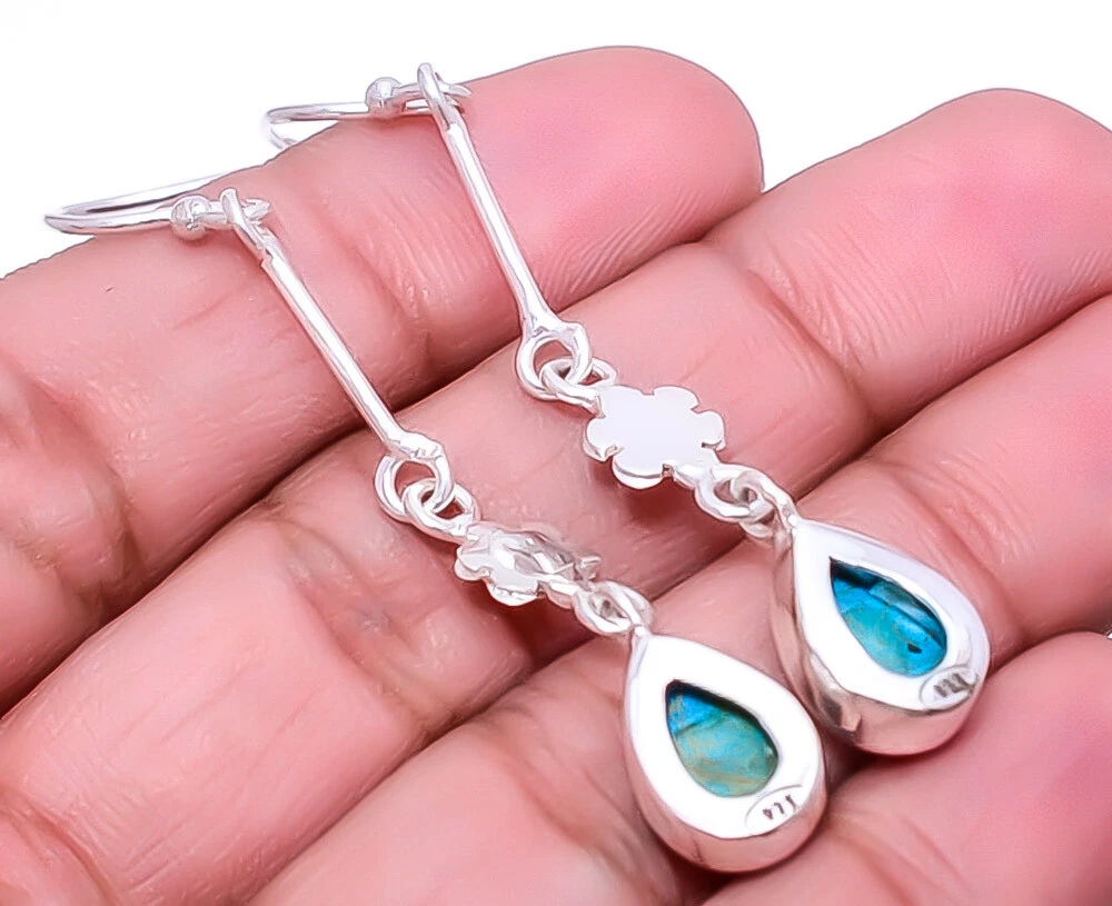 Theme Beauty Main Stone Depth As Seen in Picture Main Stone Length As Seen in Picture Main Stone Width As Seen in Picture Seller Warranty Yes Shape As Seen in Picture SKU E_9326_98_22 Main Stone Cut Type Cabochon Main Stone Size 12X8Mm Antique Yes Handmade Yes Type Earring Style Drop/Dangle Metal Sterling Silver Metal Purity 925 Parts Per 1000 Base Metal Sterling Silver Total Carat Weight 20.5 Main Stone Copper Blue Turquoise Main Stone Creation Lab-Created Main Stone Shape Pear Main Stone Color Blue Main Stone Treatment Lab-Created Material Gemstone, Stone Number of Gemstones 2 Item Length 2.46 Features Engraved, Nickel-Free, Handcrafted Ear Area Lobe Brand Unbranded Country/Region of Manufacture India Country of Origin United States Color As Seen in Picture Diamond Clarity Grade Not Applicable Number of Diamonds As Seen in Picture Item Diameter As Seen in Picture Gemstone Clarity Grade Opaque Diamond Color Grade Not Applicable Customized No Colored Diamond Intensity Not Applicable Certification 100% Genuine Guaranteed Setting Style Bezel Occasion Christmas, Birthday, Anniversary, Engagement, Wedding, Valen Shipping & Handling - Charge - 1st item-5.90 And Additional item-1.90 Handling Time - 1 Days . Delivery Time - 2 TO 3 DAYS. Shipping Service - USPS First Class Package 2 -3 Days. Returns - 1.We offer a 100% Money Back Guarantee minus shipping for 30 days after receiving the Item / item's. 2..The item must not be altered or damaged in any way shape or form. 3.Upon receiving these items your payment will be refunded. 4.Email us for return instructions before sending merchandise back. 5.Please allow up to 1 business day for all returns to receive credit. 6.Sizing does not affect the return policy. Payment - We accept PayPal for Payment ,should made with in 14 days once buying or winning done , in case of late information expected .