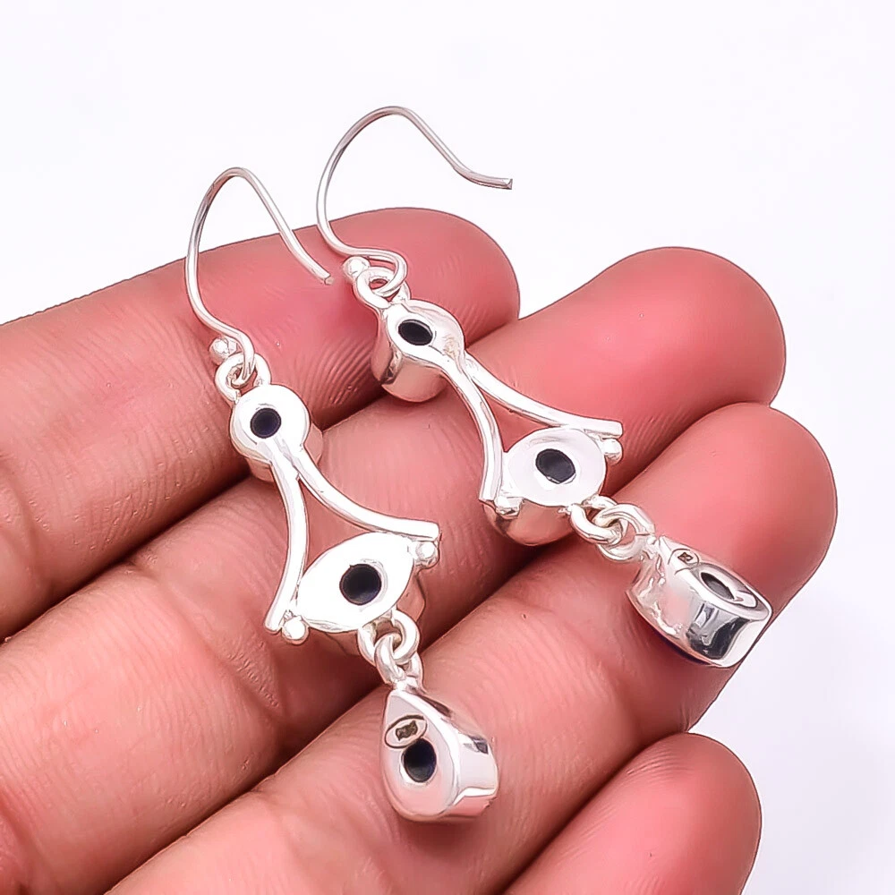 Total-weight-of-Jewelry 5.4 grams Main Stone Depth As Seen in Picture Main Stone Length As Seen in Picture Main Stone Width As Seen in Picture Seller Warranty Yes Handmade Yes Shape As Seen in Picture Signed Yes Vintage As Seen in Picture Wholesale Yes Occasion Christmas, Birthday, Anniversary, Engagement, Wedding, Valen SKU E_8046_353_26 Main Stone Size 8X6 Mm Polish Excellent Unit Quantity 1 Unit Type Unit Type Earring Style Drop/Dangle Main Stone Lapis Main Stone Creation Lab-Created Main Stone Color Same As Picture Main Stone Shape Same As Picture Main Stone Treatment Lab-Created Brand Unbranded Metal Sterling Silver Setting Style collet setting Number of Gemstones 6 Metal Purity 925 Parts Per 1000 Item Length 2.03" Item Diameter Unknown Features Unknown Ear Area Lobe Cut Grade Unknown Customized No Country/Region of Manufacture India Country of Origin United States Closure Wire Hook Base Metal Sterling Silver Secondary Stone Blue Sapphire Material Gemstone Color Same As Picture Theme Beauty Antique Same As Picture Shipping & Handling - Charge - 1st item-5.90 And Additional item-1.90 Handling Time - 1 Days . Delivery Time - 2 TO 3 DAYS. Shipping Service - USPS First Class Package 2 -3 Days. Returns - 1.We offer a 100% Money Back Guarantee minus shipping for 30 days after receiving the Item / item's. 2..The item must not be altered or damaged in any way shape or form. 3.Upon receiving these items your payment will be refunded. 4.Email us for return instructions before sending merchandise back. 5.Please allow up to 1 business day for all returns to receive credit. 6.Sizing does not affect the return policy. Payment - We accept PayPal for Payment ,should made with in 14 days once buying or winning done , in case of late information expected .