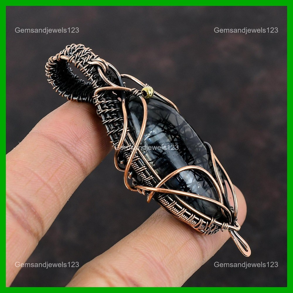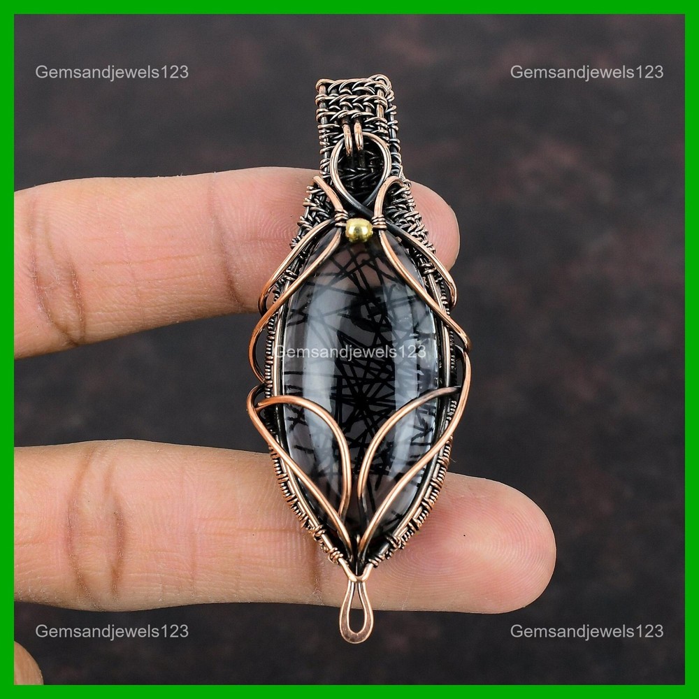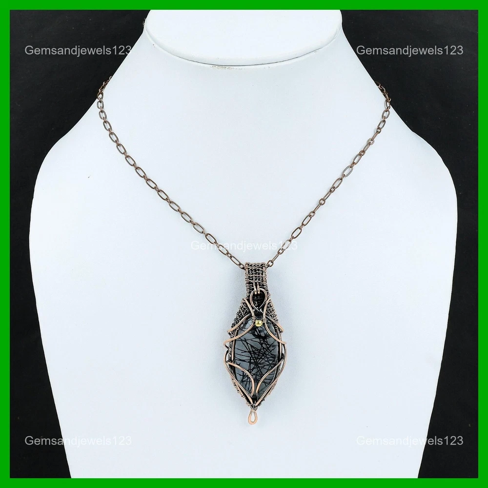 Note : Due to the natural formation of this gemstone. Slight Variation in design and color are to be expected. Welcome to gemsandjewels123 Mothers day Sale Copper Oval Black Rutile Gemstone Birthday Wire Wrapped Pendant Handmade Pendant, Wire Wrapped Pendant, Wire Wrapped Jewelry, Copper Pendant, Copper Wire Pendant, Wrapped Jewelry, Wire Wrap Pendant, Wire Wrap Jewelry SKU : VFWP-701 Gemstone : Black Rutile Stone Shape : Oval Metal Purity : Unknown Copper Length : 74 Millimeters Width : 30 Millimeters Copper has been used for jewelry making for thousands of years, dating back to ancient civilizations such as the Egyptians, Romans, and Aztecs. Copper was valued for its beauty, versatility, and durability, and was often used to make everything from jewelry and coins to cookware and tools. In addition to its historical significance, copper jewelry also offers several benefits. Copper is a natural conductor of heat and electricity, which makes it ideal for energy healing and therapeutic purposes. Wearing copper jewelry is believed to have various health benefits, such as improving circulation, reducing inflammation, and boosting the immune system. Some people also believe that copper jewelry has the ability to balance energy and improve mood. For Mother's Day Gift For Father's Day Gift For Promise For Valentine's Day For Halloween Party For Christmas Day Gift For New Year Party For Mom For Her If you can't find the information you need or need some advice for your design? Feel free to contact us. We are fast to reply :) All our work is made by hand with Love and Care in our workshop Thank you so much for visiting and hope you enjoy shopping with us gemsandjewels123 is committed to delivering the best quality sterling silver jewelry to customers. As a handmade jewelry manufacturer, we offer an extensive selection of copper gemstone jewelry that showcases the brilliance of our craftsmanship. We are an experienced handmade jewelry supplier with expertise in embellishing gemstones to suit every style. We offer you the liberty to create your jewelry ensemble with sparkling, earthy, and pure gemstones. Our Talented artisans masterfully handcraft each piece of jewelry you see here. Our pieces are made with genuine gemstones. The one-of-a-kind piece you see here is the same exact piece you will receive.