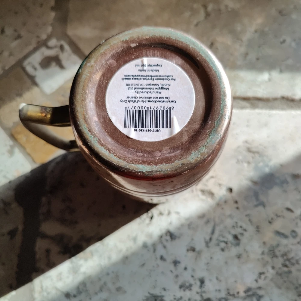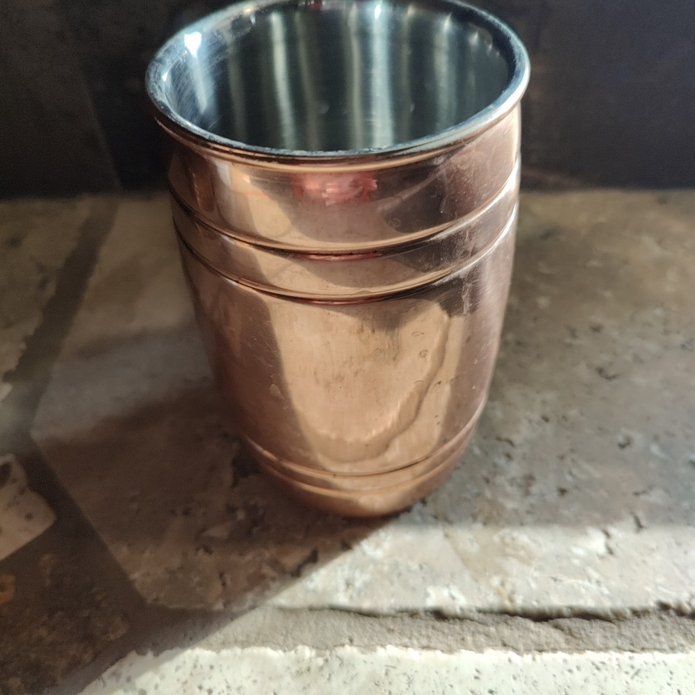 Elevate your beverage experience with the Magppie Copper Plated Aluminum Moscow Mule Mug. Designed to deliver both style and functionality. The mug is preowned showing wear including scratches/buffs/patina.