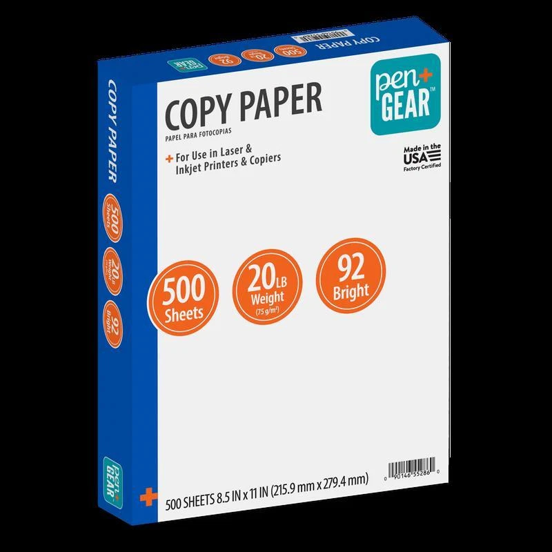 You may also like Scented Candle Apple Fritters 20 oz Jar Long Lasting Clean Burn Fragrance Red US 10.15 USD Free shipping Golden Sweet Whole Kernel Corn 106oz Shelf Stable Gluten Free Vegetarian Food US 9.24 USD Free shipping Gluten Free Buttermilk Ranch Dressing Salad Topping 36 fl oz Versatile Dip New 10.47 USD Free shipping Developmental Baby Walker W/ Toys & Songs Adjustable Height Extra-Wide Base New 55.57 USD Free shipping Faux Fur Throw Blanket Soft Reversible Micro Mink Easy Care 50" X 60" Polyester 19.44 USD Free shipping 20 Piece Flatware Set Service 4 Stainless Steel Embossed Design Rust Resistance 45.2 USD Free shipping 30 Gallon Drawstring Trash Bags 40 Count Heavy Duty Durable Garbage Bags Black 15.36 USD Free shipping 10-Piece Cotton Kitchen Towels Set Absorbent Durable Machine Washable Multi-Use 14.37 USD Free shipping Tempered Glass Slimline Digital Scale Kitchen Automatic Shut-Off Battery Black 18.66 USD Free shipping Sun-Dried Tomatoes Julienne Cut in Oil Mediterranean Herbs Gluten Free 8.5oz New 8.2 USD Free shipping 20-Piece Stainless Steel Flatware Set Service 4 Dishwasher Safe Durable Design 14.94 USD Free shipping Soft Oversized Fuzzy Throw Blanket Kid 72 X 50 in Breathable Sustainability Gray 14.97 USD Free shipping Get creative with Pen+Gear Copy Paper, great for home, office, or school. This easy-to-use printer paper lets you make your designs in rich black and color ink. The pack has 500 sheets that work with laser and inkjet printers and copiers, giving you great prints. It's perfect for printing handouts, making signs, or even starting a craft project. This white paper can be used for many things. Be sure to check out other Pen+Gear products such as pens, markers, desk organizers, file folders, highlighters, sticky notes, and more for all your school and office supply needs. Choose Pen+Gear Copy Paper today and make your next project a success! Pen+Gear Copy Paper, 8. 5" x 11", 20 lb, White, 500 Sheets Perfect choice for use at home, office, or school Works with laser and inkjet printers and copiers 500 20 lb sheets in 92 bright white Pair with other Pen+Gear products You may also like Large Scented Jar Candle 110 Hours Soothing Fragrance Exotic Island Escape New 25.32 USD Free shipping 3-Wick Scented Candle Cozy Comfort Aroma Relaxation Gift 14oz Home Decor White 8.95 USD Free shipping Salted Coconut Mahogany Scented Wooden Wick Jar Candle 18oz 52 Hour Burn Black 19.3 USD Free shipping Vanilla Scented Single-Wick Large Glass Jar Candle 20oz Aromatic Home Decor New 10.15 USD Free shipping Iridescent Wax Melt Warmer Electric Scented Wax Heater Home Fragrance Decor New 10.5 USD Free shipping 2-Wick Scented Jar Candle 12oz Salted Coconut Mahogany Cozy Home Decor Brown New 14.66 USD Free shipping 12 oz 2-Wick Scented Jar Candle Warm Leather Amber Paraffin Wax Home Decor New 14.66 USD Free shipping Long Faux Fur Backrest Pillow Comfort Floor Lounging Reading Movie Watching New 23.95 USD Free shipping Folding Adirondack Table Portable Outdoor Use ABS Plastic Lightweight Durable US 28.89 USD Free shipping Scented Glass Jar Candle Alpine Forest Aroma Clean Burn Relaxing Home Decor New 10.15 USD Free shipping Chenille Decorative Pillow Set Super Soft 18 Inch Square Indoor Accents 2 Pieces 22.44 USD Free shipping 10 Piece Cotton Towel Set Soft Absorbent Quick Dry Durable Machine Washable Grey 20.95 USD Free shipping