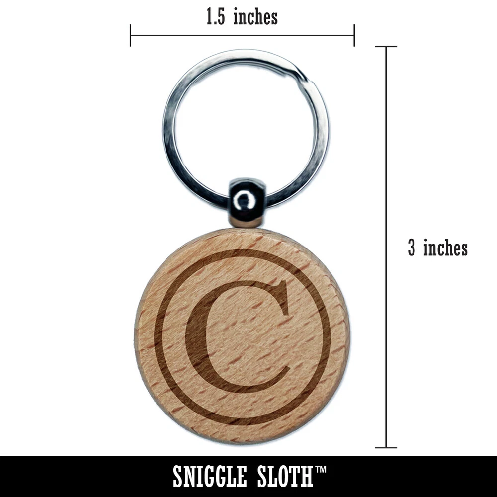 Copyright Symbol Engraved Wood Round Keychain Tag Charm