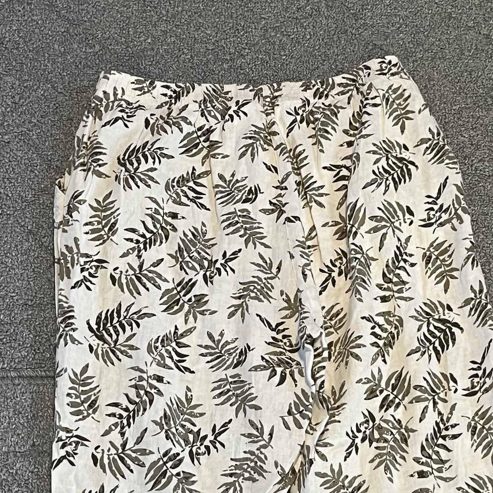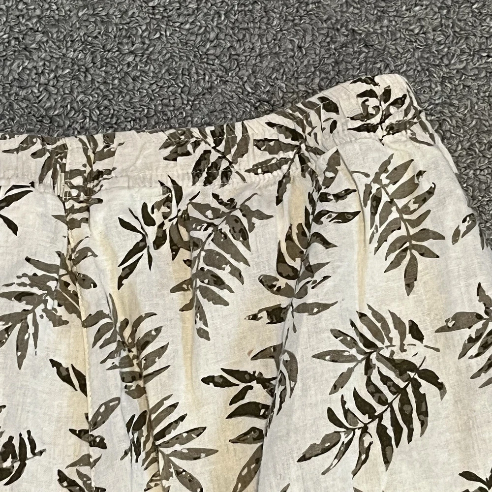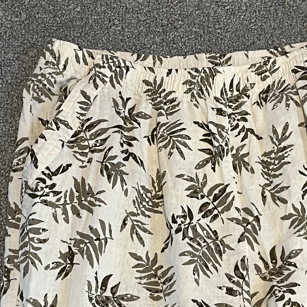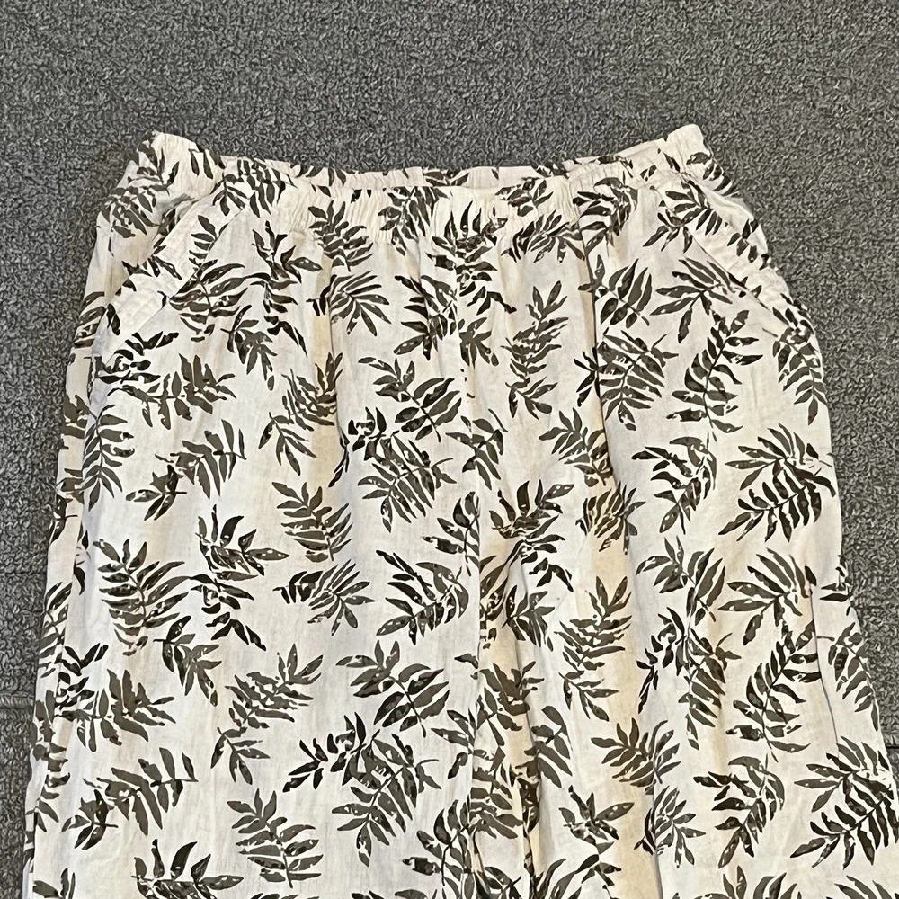 Coral Bay Pants Womens size Medium White Green Floral Cropped Tropical See measurements for accurate fit Inseam 21 inches Rise 11.5 inches Waist 13.5 inches across Measurements are done flat lay Missing drawstring