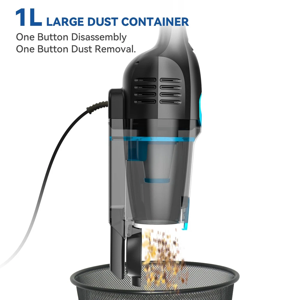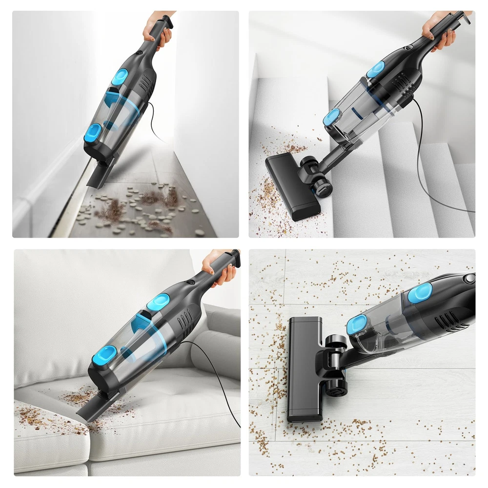 Corded Stick Vacuum Cleaner, 20000pa Powerful Suction Stick Vacuum with 16Ft Cord, 2 in 1 Lightweight Vacuum Cleaner for Hard Floor Pet Hair - Blue 【20Kpa Powerful Suction Power 】corded stick vacuum with one-touch mode, rejects complicated operation and always provides powerful suction power of 20,000Pa, stick vacuum cleaner can easily capture dust, crumbs, debris, pet hair and other messes. Deep clean your whole home. 【Cyclone HEPA Filtration System】Our vacuum cleaner with high efficiency cyclone technology helps to clean up to 99.99% of tiny dust particles as small as 0.1 microns, which can separate different sizes of dust and avoid secondary pollution. So this corded stick vacuum cleaner provides purified air for your family. 【Multi-Function】Our vacuum cleaner with a floor brush, square brush, crevice Tool etc. The floor brush is great for hardwood floors. When used as a handheld vacuum, it can clean all corners of sofas, beds, cabinets and dressers for all your daily cleaning needs. Plus, it weighs only 3.3 pounds, making it ideal for one-handed cleaning. Comes with a storage base for easy storage anywhere you want after each use. 【16Ft Long Cord 】The cord function allows unlimited vacuuming time without recharging, no more troubles of frequent charging or battery replacement. At the same time, the extra-long cord is long enough to allow you to clean all corners of the room without having to change outlets for use. 【Pefect Customer Service】This vacuum cleaner provides 12 months service assurance. If you have any questions about the product, please contact us via the email, we provide 24/7 online service to provide you the best shopping experience! 20Kpa Powerful Suction Stick Vacuum Shipping We offer FREE shipping on all orders! We ship within Three business days of payment, usually sooner. We use a selection of shipping services such as UPS, FedEx, USPS etc. We only ship to the lower 48 states, no APO/FPO addresses or PO Boxes allowed. Local pickups and combined shipping options are not provided at this time. Return You can return a product for up to 30 days from the date you purchased it. Any product you return must be in the same condition you received it and in the original packaging. Please keep the receipt. Payment We accept payment by any of the following methods: PayPal Please pay as soon as possible after winning an auction, as that will allow us to post your item to you sooner! Feedback Customer satisfaction is very important to us. If you have any problem with your order, please contact us and we will do our best to make you satisfied. Contact Us If you have any queries, please contact us via ebay. We usually respond within 24 hours on weekdays. Please visit our eBay store to check out other items for sale! Thank you for shopping at our store.