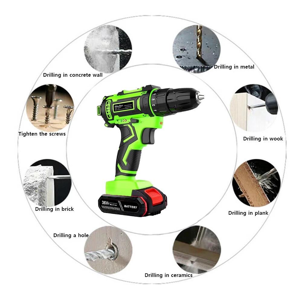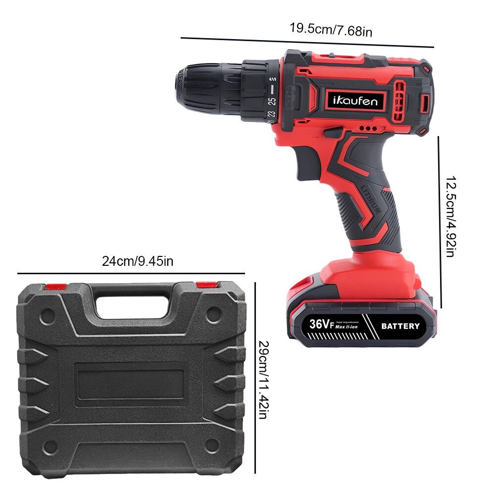 Cordless Brushless Impact Driver Hammer Drill Combo Kit with 2 Battery & Charger Detail: 21V Cordless Drill Powerful Motor Driver LED Screwdriver with 2 Battery Description: Perfect for tasks around the home, garden, garage, DIY and workshop, including drilling into wood, metal, drywall, plastics and all screw driving tasks, it can be your excellent helper for your various home projects. ✏️2-SPEED FOR DIFFERENT APPLICATIONS - 25+1 torque settings and 2-Speed( ( 0-450 & 0-1500 RPM ) of power drill allows the user to find just the right speed for each job. cordless drill is perfect for DIY and craft projects at home. It's good ideal gift for ourselves, family and friend. ✏️ ERGONOMIC LIGHTWEIGHT DESIGN - More comfortable to use for long periods on account of its 5 lbs. weight and micro-texture rubber grip handle. Power drill has a cordless compact lightweight design, get rid of the trouble of finding a socket for charging with a wired drill. ✏️ 25+1 TORQUE SETTINGS - Provide the most suitable drilling force and precise control for drilling into wood, metal, plastic and all screw driving tasks. ✏️ HIGH/LOW SPEED CONTROL - Slow for backing out fasteners or for drilling into certain surfaces, fast for the other stuff. 2 speeds to handle every common drilling and driving application. (max 1500rpm) ✏️ FORWARD AND REVERSE FUNCTIONS - The forward/reverse switch allows screws driving or unscrewing with convenience. ✏️ VARIABLE SPEED TRIGGER - You can control the speed you need at any time. Screw direction will not deviate due to too fast starting speed. ✏️ BUILT-IN LED - This trigger activated light illuminates any work area, so you can see what you’re drilling in the dark. Perfect for working in basements, outdoors, or tight spaces without lighting. Specification: Product Name: Impact Drill Color: Red/Green Handle type: Handheld Drive shaft/chuck: Chuck Clutch Setting: 25 + 1 Motor Reverse: Available Power Source: Battery Powered Battery capacity: 1500mAh Battery :2PCS Battery voltage: 36V Maximum torque: 55Nm Idle speed: 0-1500rpm/0-450rpm Package Contains: 1 x 21V Cordless Drill Driver 1 x Fast Charger(about 1-2 hour full). 2 x 1500mAh Lithium Ion Batteries. 1 x Flexible Shaft Driver. 9 x Socket Wrench 3 x Twist Drill Bits . 3 x Brad Point Drill Bits 6 x Screwdriver Bit . 1 x Socket Adapter. 1 x Hex Screwdriver Holder. 1 x Carrying Box. 1 x User Manual. Payment Delivery details Return About us Contact us Payment 1.We accept Credit cards、Debit card、Apple Pay、Google Pay ect. payment. 2.Please contact us if you need to use another method to pay. 3.Please contact us if you need to use another method to pay. 4. We are not responsible for buyers' local taxes. 5.Please include your special requests in eBay note if there is any. 6.We reserve the final right of selling. Delivery details Order will be shipped within 2 business day after payment confirmed. We have warehouse in USA. Delivery time varies from 3 to 7 business days. We will ship according to your Ebay address. Please make sure it is correct and include phone number for delivery . If you do not receive the package within the estimated time, please contact me before opening a Item not received dispute, I will deal with it for you as soon as possible, replacement or refund. Return Buyer Guarantee We assure you that we are a honest and super reliable seller on ebay, any problems can be solved in a satisfing way for you and any loss will not be brought to you as long as you will kindly contact us via ebay message or your private email. Please kindly contact us firstly if your purchasing is in trouble before leaving any bad feedback including neutral and negative feedback and leaving 3 stars or less stars to me on 4 criteria. Return Policy Please return the item within 30 days after receiving if you are not happy with your purchasing.All returns are expected to be in original conditions, please email us first for return address and instructions. About us Welcome to our store! Our items are shipped from US . All of our items are Authentic, directly from the manufacturers. We also have a strong after-sales technical team, and provide good service and warranty. If you have any questions, please feel free to contact us and we will reply as soon as possible.Wish you a very good time here! Contact us We provide the best customer service! Once the item arrives in satisfactory condition, please leave good feedback for us, your recognition is our power to move forward. If you have any questions, please contact us before leaving a review,and we will do our best to resolve them for you~ Brand Unbranded Type Drill Set Battery Included Yes Voltage 36V Number of Batteries 2 Number of Items in Set 1 Set Includes Attachments, Battery, Battery Charger, Case, Drill Bits, Extension rod, Hand Tools, Screwdriver Bits, Socket Connector Power Source Battery Battery Technology Lithium-Ion (Li-Ion) Auxiliary Handle Yes Battery Capacity 1.5 Ah Chuck Type Keyless Speed 1500 RPM Maximum Torque 330 in-lbs Charging Time 1 hr Model 36V Cordless Drill Set MPN Cordless Drill Cable Length NO Motor Type Brushless Color Red+Green Features Compact, Lightweight On Dec 26, 2024 at 23:46:22 PST, seller added the following information: