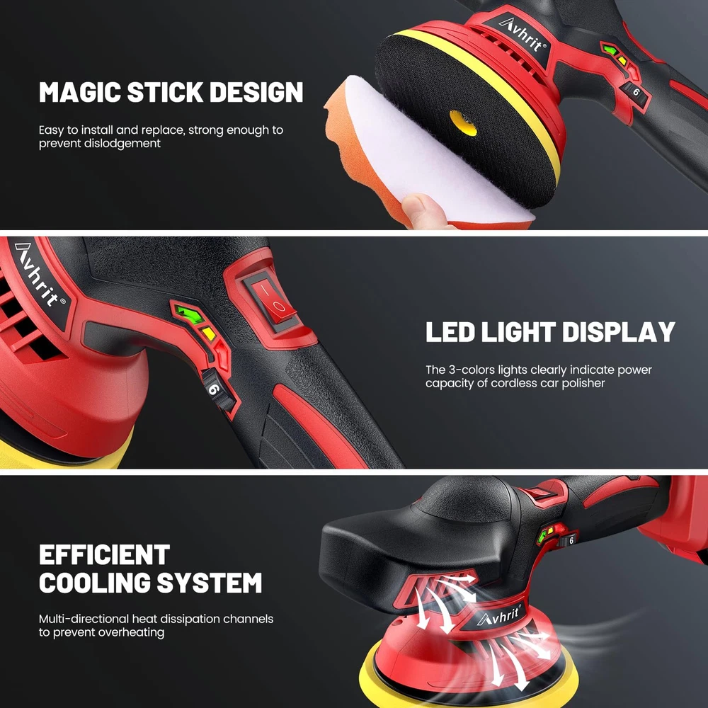 Time and Money Saver: Compared with the traditional corded polishers, this upgraded car cordless buffer is more portable to use, letting you get the rid of the trouble to drag, yank and position a cord. If your looking for fast results to remove swirls with cost effective tools and Dual action machine polishers/buffers, it comes to the right . This way, you’ll be able to remove any scratches and swirl marks and make your paint glossy again High-Performance Rotary Polisher: The powerful motor of cordless buffer produces up to 4500 RPM with low noise– powerful enough for a professional or beginner. The high-performance car polisher helps to increase your efficiency Lightweight and Cordless Design: Only 3 pounds light weight, compact and portable design make it easy for carrying and storage. A cordless polisher that is not limited by cables. You just plug in the battery, and you can use it anywhere Powerful Brushless Motor: This polisher has a built-in high-efficiency brushless motor, which can provide a maximum speed of 4500 rpm. The motor is made of copper with an anti-interference function and has lower noise,comfortable for daily use. Professional and safe, very suitable for beginners Large Capacity Battery: This polishing machine is equipped with 21 V 2.0 Ah batteries. And equipped with a fast charger. Use batteries alternately, no need to worry about running out of battery power, say no to battery anxiety Efficient Cleaning: 8 mm random orbit for a swirl-free finish, which enables more efficient cleaning than traditional polishers. And, it has 6 adjustable gears, you can choose 1600-2500 RPM, you can choose the appropriate gear according to different usage scenarios. This car buffers and polishers kit is an ideal polishing tool Wide Application: This dual action polisher is equipped with a variety of pads, you can replace different pads according to different scenarios. And with Velcro design, you can easily install it. Suitable for cleaning cars, furniture, wood, leather, tiles Updated design handle: More ergonomic handle design, wider than other car polishers and buffer handles, more suitable for long-term use. Beginners on the hand fast, and will not hurt the car paint 6 Inch Backing Plate: This car polisher is well made and features a hook and loop surface, you can easily change the various pads that come with the unit. Coming with a backing plate of approximately 6" diameter, the car polishers and buffers covers a good amount of space, works for larger areas faster, enables more efficient cleaning than traditional polishers What You Will Get: 1 * Cordless Buffer Polisher, 2 * Battery, 1 * Charger, 1* Loop Backing Plate, 2* Foam Pads, 2* Waffle Foam Pads, 1* Knitted Wool Pad, 2* Polishing Bonnet , 2* Sandpapers, and you get the LSA (Service Agreement), available at . offers a three-year
