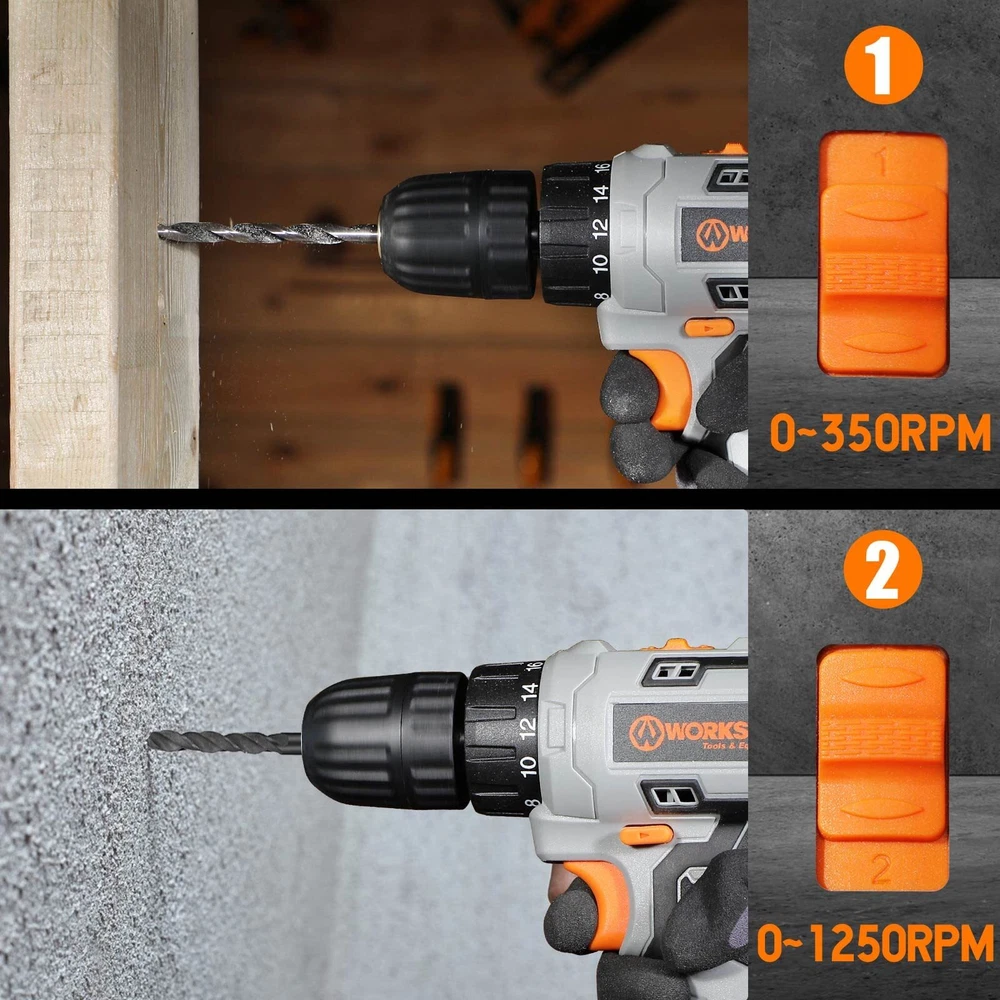 Cordless Drill, 3/8" Impact Drill Driver Set with 18+1 Keyless Chuck, 442 In-lbs Torque, 2 Variable Speeds, 44 pcs Accessories and Tool Bag High Performance: The clutch equipped with 18+1 torque setting and 442 In-lbs (50N.m), which provides precise control for driving in/out screws to prevent stripping, and drilling into wood, ceramics, plastics, and even metal with ease Efficient Working: A flexible shaft could be used in some places where driver bits are hard to reach. Built-In LED Light will increase your working efficiency and provide safety under dark environment Premium Accessories for your One-Stop Shopping: 44pcs accessories and 1 carry bag for convenient storage: 32 pcs 1 inch screwdriver bits, 10 pcs drill bits, 1 pc flexible shaft, 1 pc magnetic bit hodler Wide Applications: Our drill set euqipped with 2 modes and 2 adjustable speeds, which is ideal for hanging pictures, assembling or repairing furniture, tightening screws and many other DIY and craft projects Safe & Lightweight: The rubber-covered handle design provides a comfortable grip for being breezily operated in one hand and minimize fatigue in most daily screwing and drilling tasks Shipping We offer FREE shipping on all orders! We ship within Three business days of payment, usually sooner. We use a selection of shipping services such as UPS, FedEx, USPS etc. We only ship to the lower 48 states, no APO/FPO addresses or PO Boxes allowed. Local pickups and combined shipping options are not provided at this time. Return You can return a product for up to 30 days from the date you purchased it. Any product you return must be in the same condition you received it and in the original packaging. Please keep the receipt. Payment We accept payment by any of the following methods: PayPal Please pay as soon as possible after winning an auction, as that will allow us to post your item to you sooner! Feedback Customer satisfaction is very important to us. If you have any problem with your order, please contact us and we will do our best to make you satisfied. Contact Us If you have any queries, please contact us via ebay. We usually respond within 24 hours on weekdays. Please visit our eBay store to check out other items for sale! Thank you for shopping at our store.
