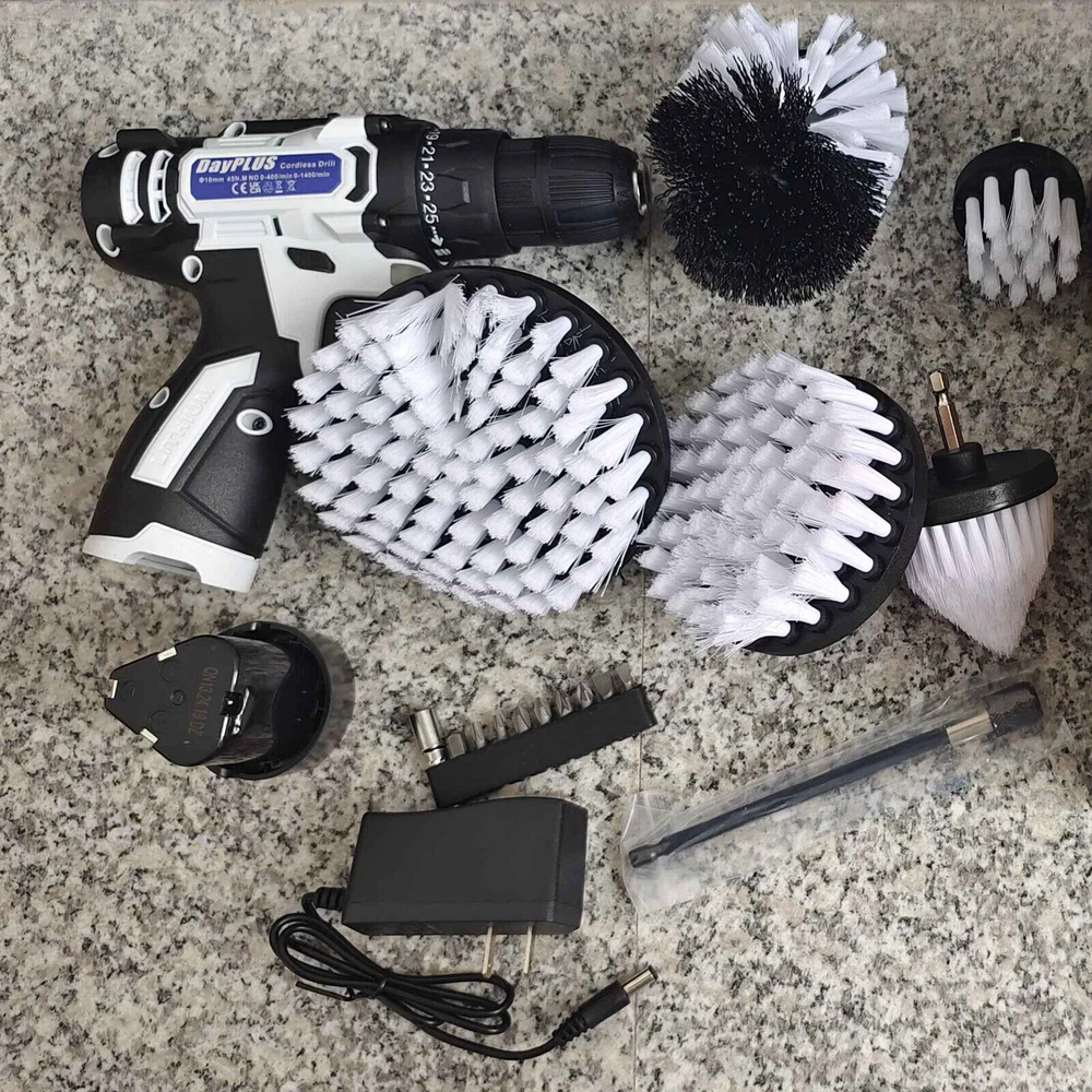 Cordless Drill Electric Screwdriver Rechargeable Drill Brush Set Cleaning Tools *US LOCAL WAREHOUSE *LIFETIME MONEY BACK *LIFETIME REPLACEMENT REFUND *MONEY BACK Guarantee *LIFETIME Warranty *Clearance ! The Cheapest Price ! BIG SALE 30% OFF! *Free Replacement Guarantee *Free Replacement *Replacement Guarantee Battery + Drill+6Pcs Cleaning Brush Head White: Package includes: Drill Body *1 Drill bit accessory kit *10 Charger*1 Li-ion 16.8V Batteries (1 or 2 Battery can be choose) 5 inch flat brush *1 4 inch flat brush *1 2 inch flat brush *1 3 inch round brush *1 2.5 inch corner brush *1 6 inch extension pole *1 High quality materials: The drill head is made of high quality and durable PP material, moderately hard, abrasion and heat resistant, and ensures durability and long-lasting performance even under strict use conditions. Easy to install: this product includes a 16.8V cordless drill rig and extension rod, the drill brush attachment is fixed with hexagonal screws, just insert the brush attachment into the drill bit or extension rod and tighten it. Save time and effort: Cleaning with a drill brush can greatly reduce cleaning time and effort. The high-speed rotation of the brush, combined with the right detergent, can quickly transform a dirty surface into a clean surface. 5 different sizes: Includes 3 flat brushes (2"/4"/5"), 1 round brush (3 inches), 1 oblique brush (2.5 inches), 1 extension rod (6 inches), 1x 16.8V cordless drill bit and 10x drill accessories. Wide application: installed on an electric drill, it can clean surfaces such as bathrooms, kitchens, sinks, bathtubs, showers, tiles, concrete floors, bathrooms, carpets, cars, boats and wheels. Cleaning brushes can also be installed on most drills. Payment Delivery details Terms of sales Welcome Contact us Payment 1.Please check the item after you receive it,please keep us posted if you have any confusion or porblems about your order .We will give you reply and best solution within 1 working day . 2. Please don't leave any neutral/negative feedback or open a case when you have problems with our product , we promise to try our best to help and not let your interest be damaged. 3.If you are satisfied with our product,please leave us a 5 stars positive feedback and we will do the same for you. Delivery details Sincerely thank you for choosing us, we suggest you reading our shipping terms and conditions. 1.All items are shipped within 1-2 business days after we confirm your payment and your shipping address. 2.We only ship our items to the areas that our logistics provider covers. 3.To ensure you receive item safely, please offer the concrete and complete shipping address 4.Please keep the consistency of the address from Paypal and eBay. 5.Sometimes your order may be impacted by extreme bad weather, strikes or other unexpected events. 6.If there are any problems with your order, including late delivery or being lost, please do not hesitate to contact us. We are happy to offer solutions to your inquiries. Terms of sales 1.We accept PayPal only! 2.Please keep the consistency of the address from Paypal and eBay. 3.Payment must be received within 3 days since you won the item, or eBay will launch Unpaid Reminder Against you. Welcome Contact us If you have any question,Please no hesitation to contact us via ebay message, we will reply you within 24 working hours .