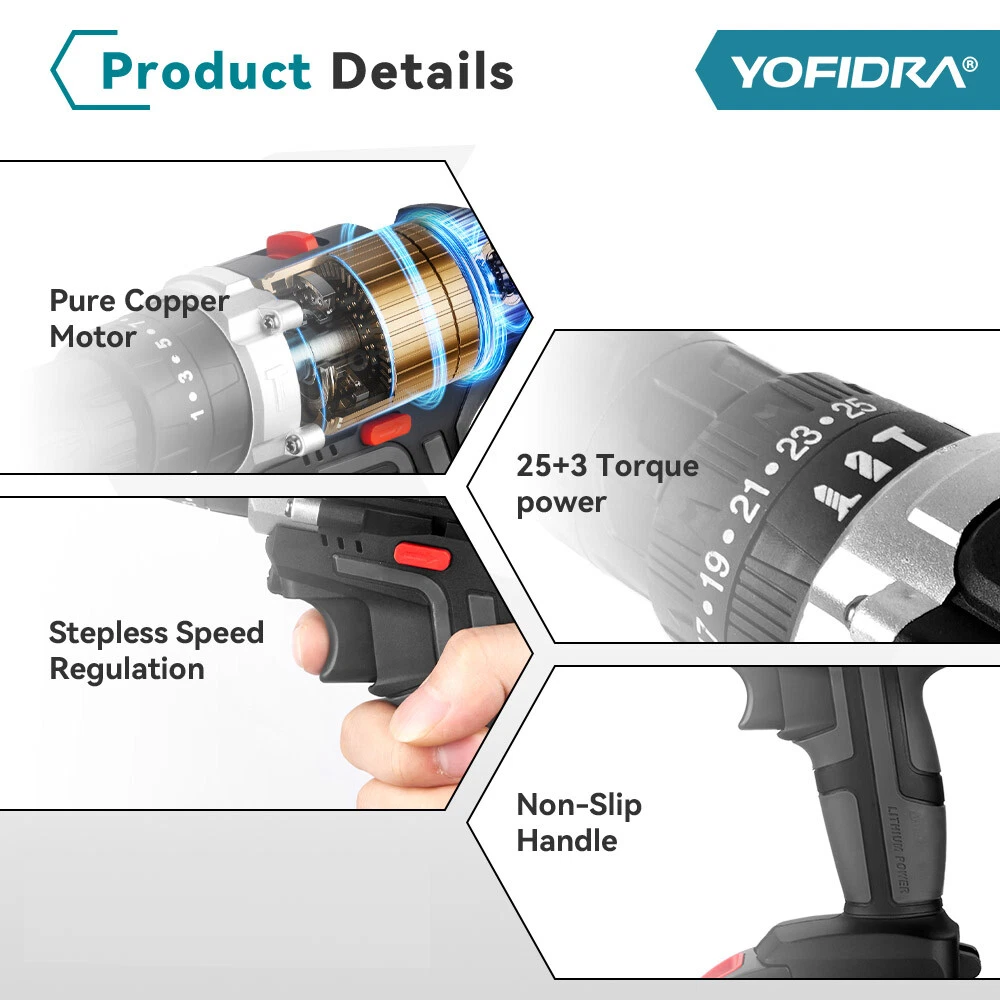 Store Categories Store Categories Chainsaw Impact Wrench All Power Tool Other Welcome To Our Store Product Description Features: 【3/8’’ Auto Chuck, 25+3 Clutch & 2-Variable Speed】Cordless Drill Set with large 3/8"(10mm) keyless chuck can provide you superior bit retention. Equipped with 3-in-1 working mode (Screw Driver, Drill and Impact Hammer). This variable-speed (0-450RPM, 0-1450RPM) and 25+3 position drill is a powerful all-round helper for matching your desir es, perfect for h ouseho ld reconstruction, improvements, DIY handcrafts, renovation, garden work, or auto repairs. 【Powerful Robust Motor, Max 28Nm for Versatile Use】drill toolset is designed with all-copper double-bearing gear motor, high-performance motor delivers strong and steady power and an endurable run time. Drill with the max 28Nm torque fits a wide range of projects from screwing to metal or wood drilling. Explore more crazy life hacks (buffing, peeling, grinding, etc.) with his 21V Max drill. 【Two 2000mAh Batteries & Fast Charger 】- Has made great progress in 1,000-Charging Cycle Test that guarantees each battery is more powerful and lasting longer than those also-rans. Our cordless drill driver is powered by a max 21 voltage, 2Ah Lithium-ion battery for strong and steady power and an endurable run time. The 1-hour fast charger can quickly restore power to the battery, and you can continue to work just by replacing the battery. 【Ergonomic Design & Comfortable to Use】Electric drill comes with shock absorber and a soft rubber over-mold handle to offers maximum user comfort and less vibration. You can control this tool without any sence of fatigue while using. Trigger-activated LED light illuminates your work area. The balancer on the top helps maintain horizontal accuracy. 【Premium Accessories for your One-Stop Shopping 】 Choose your drill driver set without worrying about purchasing any other accessories. Our tenet is providing you a one-stop source with convenience and saving you a lot of time and efforts. 24Pcs practical accessories to help you cope with different usage scenarios. Great Gifts for Birthday, Father's day, Th anksgiving Day, Christmas! Specifications: Battery Type: Li-io n Battery Voltage: 21V Battery Capacity: 2000mAh Battery Charger: AC100-240V Maximum Torque: 25Nm Torque Level: 25+3 Idle Speed: 0-450r/min, 0-1600r/min Chuck: 0.5-10mm Package Contains: 1x Imp act Drill 2x Batteries 24x Accessories 1x US Charger 1x Case Please know before placing an order: Our power tools are compatible for Makita 18V batteries, this does not mean that it is an original product. Compatible for Makita 18V Battery: (Refers that our machines are compatible with the following battery models.) √ Compatible for 18V B series lithium battery, such as BL1850B (197285-8), BL1840B (197270-1), BL1830B (197602-2), BL1430B (197618-7), BL1820B (197487-6) √ Compatible for BL1850, BL1840, BL1440(196391-6), BL1415(194560-3), BL1815N(196781-3) Payment Policy Shipping Policy Returns Policy Tems of sales Payment Policy 1. We accept PayPal only. 2. All major credit cards are accepted through secure payment processor PayPal. 3. Payment must be received within 7 business days of auction closing. 4. We ship to your eBay or Paypal address. Please make sure your eBay and Paypal address is correct before you pay. Shipping Policy 1. We ship to your eBay or Paypal address. Please make sure your eBay and Paypal address is correct before you pay. 2. Items will be shipped within 1-3 business day when we received payment. 3. Delivery time depends on destination and other factors; 4. International buyers please note: a.Import duties, taxes and charges are not included in the item price or shipping charges. These charges are buyer’s responsibility. We will try our best to reduce the risk of the custom duties. b.Please check with your country's customs office to determine what these additional costs will be prior to buying. Returns Policy 30-day returns. Buyer pays return postage Tems of sales 1. If you are satisfied, we sincerely hope that you can leave us a positive feedback and 5-star Detailed Seller Ratings, which are of vital importance to the growth of our company. 2. Besides, PLEASE DO NOT leave us 1, 2, 3 or 4-star Detailed Seller Ratings because they are EQUAL TO negative feedback. Like we said before, if you have any questions, please contact us first coz disagreement cannot settle problems. We really appreciate your support! 3. We Strive for Five Star 5/5 detailed rating positive feedback. If for any reason you are not satisfied please give us the opportunity to resolve the issue before leaving feedback or opening a dispute on Paypal or Ebay. Thank you! Copyright © 2023 Dianxiaomi