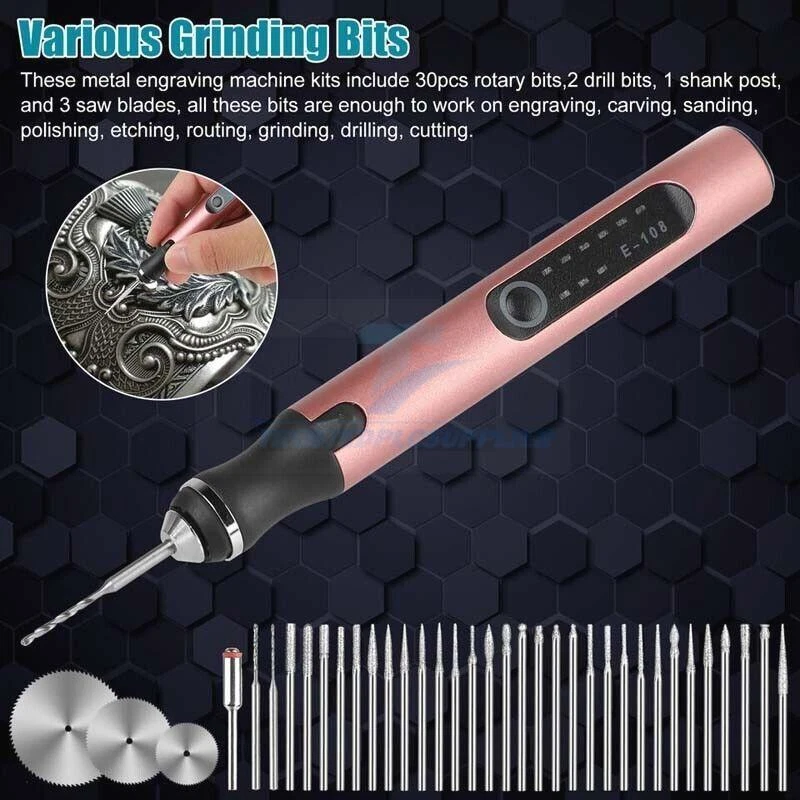 Product Description Cordless Electric Engraving Pen Rotary Tool Kit Variable Speed W/ 37 Accessories Feature: USB Charging Wireless Engraver: This engraving tool is equipped with a Lithium battery and rechargeable by a USB interface. Cordless use will take up to 30 minutes of idling after a full charge. Easy to help you finish a better-engraved craft. Adjustable Speed: 3 levels of speed can be adjustable from 5000-18000 r/min for different situations. The lowest speed will let you polish your nail in a safe, the highest speed is also working on metal carving. Various Grinding Bits: These metal engraving machine kits include 30pcs rotary bits,2 drill bits, 1 shank post, and 3 saw blades, all these bits are enough to work on engraving, carving, sanding, polishing, etching, routing, grinding, drilling, cutting. Unique Design&Intelligent Power-off: This DIY electric engraving pen is equipped with a power indicator, speed indicator, and overload indicator, which can know the usage of the engraving pen in real-time. When the working resistance is too large, it will automatically cut off the power to prevent it from damaging the engraving pen. Safe to use. Wide Applications: The electric engraver supports you to engrave, engrave, sand, polish, etch, mill, grind, drill, cut, and more on metal, glass, ceramic, leather, wood, stone, or statue work. Specification: Type: Electric Engraving Tool Quantity:38Pcs Color: Pink Power Source: USB charging Power:10W Voltage:4.2V Battery Type: Lithium battery Speed:5000-18000r / min Clamping Diameter:2.35mm Tool Length:120 mm/4.73 inch Battery capacity:300MAH Suitable for: all 2.35MM specification grinding heads, reducing drill, etc Fit for metal, glass, ceramic, leather, wood, stone, or statue work Application: engraving, carving, sanding, polishing, etching, routing, grinding, drilling, cutting Included: 1 x Electric engraving pen 1 x USB Charging Cable 30 x Rotary bits 2 x Drill bits 3 x Stainless Steel Cutting Discs 1 x shank post 1 x User manual About Us Payment Shipping Returns Contact Us 1. Unless specified otherwise, all our products are IN STOCK and are shipped from USA Local warehouse - Not Overseas! 2. We provide a 30 day Satisfaction Guarantee or your money back (provided items are in the same new and resaleable condition.) 3. We have a PayPal Verified Business Account, please buy with Confidence! 4. Every item will be tesrted before send.We know our products well and if we don't have the answers we will do our best to find them for you! 5. Our friendly team look forward to serving you! Your satisfaction is our No.1 Priority We will do our best to satisfacy you. 1.Paypal, Credit Card, G Pay etc, many payment way is accepted. 2.Please be sure your shipping address is correct before make a payment. 1.We will ship out the item within 1-3 business days after comfirming the payment, appreciate your patience. 2.If the items are broken on the way(we will check the orders clearly before we sent them),please contact us in 3 days you received it. We will send you a new one or refund your payment. 1.We stand behind every buyer.Items can be returned for exchange or refund within 30 days. 2.Please contact us when you have any confusion of our item, we will solve the trouble for you as soon as possible. 1.This is professional Seller.We will reply your message within 24 hours. 2.Please contact us whenever you have any question about the item. We will deal with it as soon as possible. 3. If you are unhappy with the item or our service,please Contact Us before leave feedback,just give me a chance,thank you! About Us 1. Unless specified otherwise, all our products are IN STOCK and are shipped from USA Local warehouse - Not Overseas! 2. We provide a 30 day Satisfaction Guarantee or your money back (provided items are in the same new and resaleable condition.) 3. We have a PayPal Verified Business Account, please buy with Confidence! 4. Every item will be tesrted before send.We know our products well and if we don't have the answers we will do our best to find them for you! 5. Our friendly team look forward to serving you! Your satisfaction is our No.1 Priority We will do our best to satisfacy you. Payment 1.Paypal, Credit Card, G Pay etc, many payment way is accepted. 2.Please be sure your shipping address is correct before make a payment. Shipping 1.We will ship out the item within 1-3 business days after comfirming the payment, appreciate your patience. 2.If the items are broken on the way(we will check the orders clearly before we sent them),please contact us in 3 days you received it. We will send you a new one or refund your payment. Returns 1.We stand behind every buyer.Items can be returned for exchange or refund within 30 days. 2.Please contact us when you have any confusion of our item, we will solve the trouble for you as soon as possible. Contact Us 1.This is professional Seller.We will reply your message within 24 hours. 2.Please contact us whenever you have any question about the item. We will deal with it as soon as possible. 3. If you are unhappy with the item or our service,please Contact Us before leave feedback,just give me a chance,thank you! You may also like 4 Gauge Car Audio Cable Kit Amplifier Install Amp RCA Subwoofer Sub Wiring 2300W 18.89 USD 0.99 USD 42 Tips 96W Universal Power Supply Charger for Laptop Notebook AC/DC Power 14.99 USD 15.99 USD 0.99 USD 6% off Oven Stove Igniter for Samsung DG94-00520A Fast Shipping 16.99 USD Free shipping 9PC ABS Socket Organizer 1/2 3/8 1/4 inch Drive Socket Rail Holders Wall Mount 18.49 USD Free shipping Car Steering Wheel Tray Desk Two Sided For Laptop Drink Food Work Table Holder 9.99 USD 0.49 USD Commercial LED Outdoor Dusk to Dawn Solar Street Light Road Area Lamp USA 21.99 USD 24.99 USD Free shipping 12% off powered by