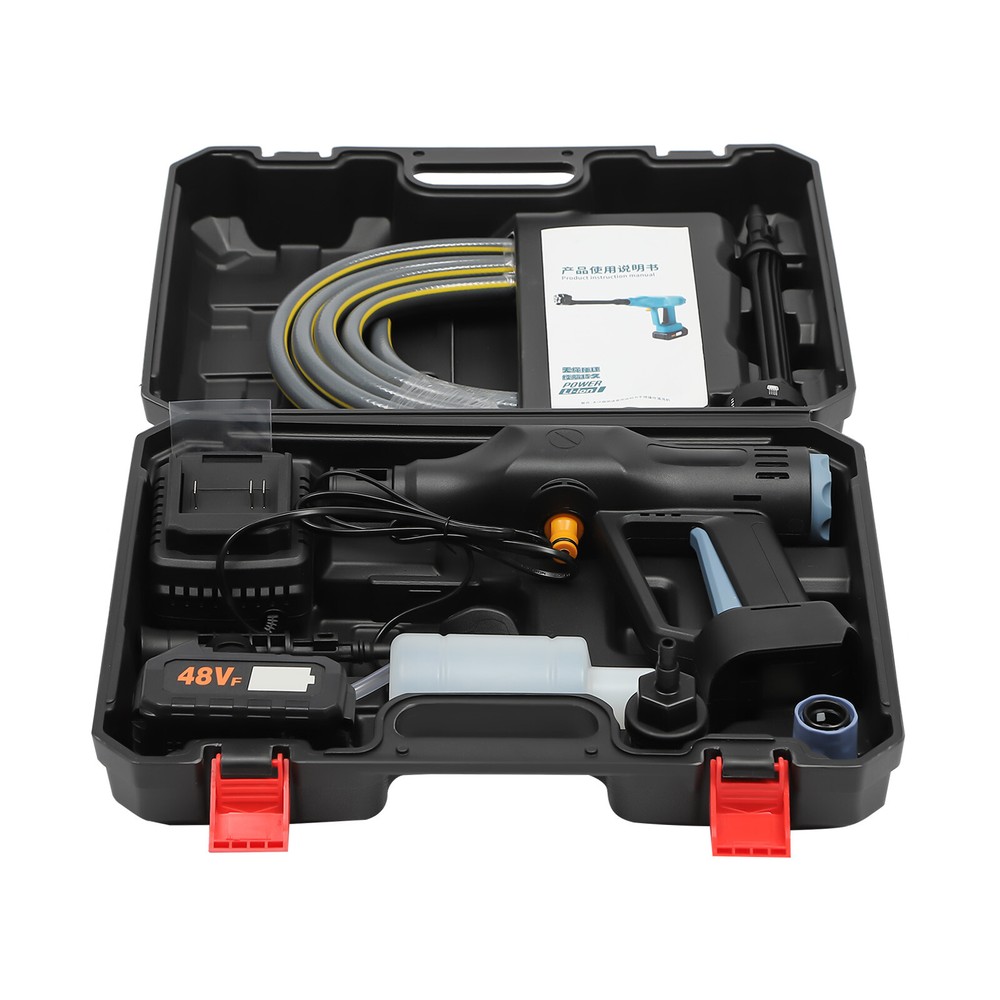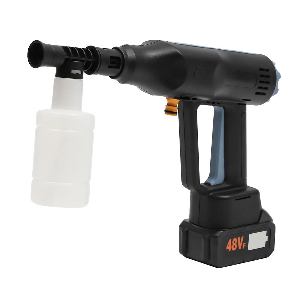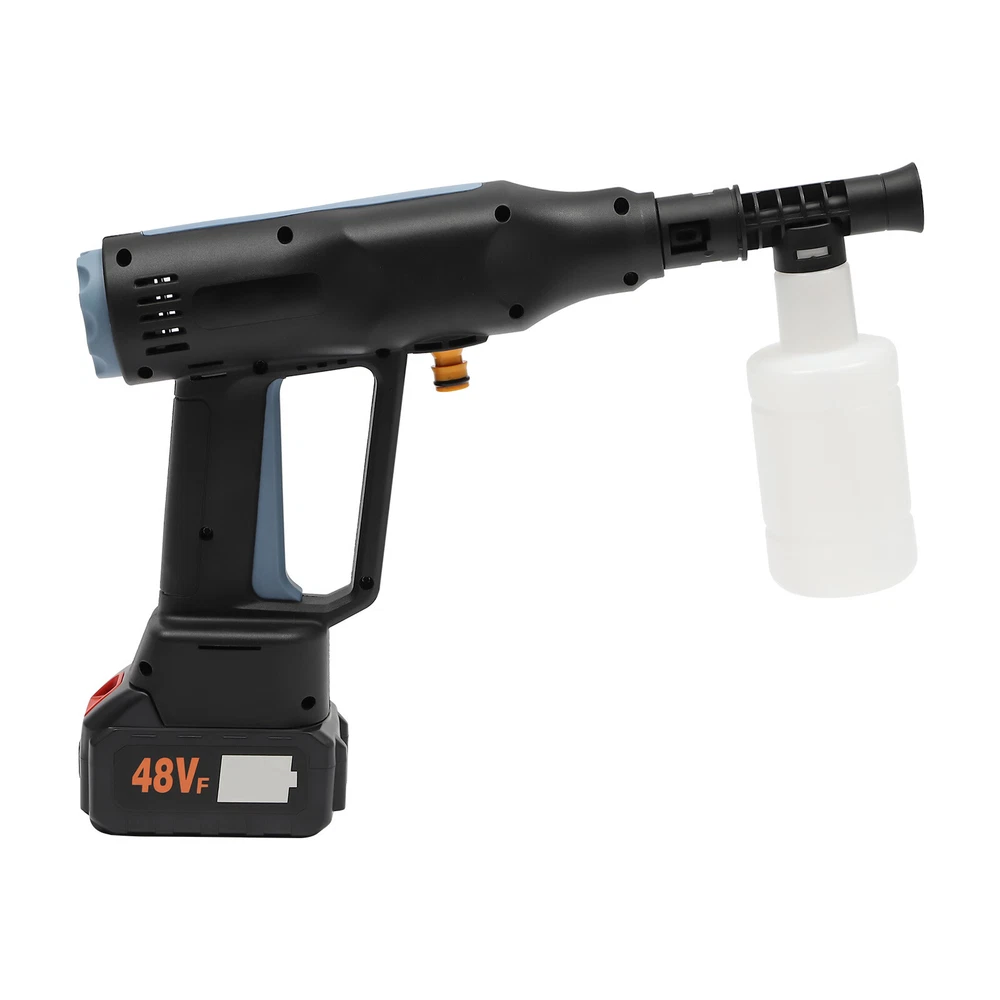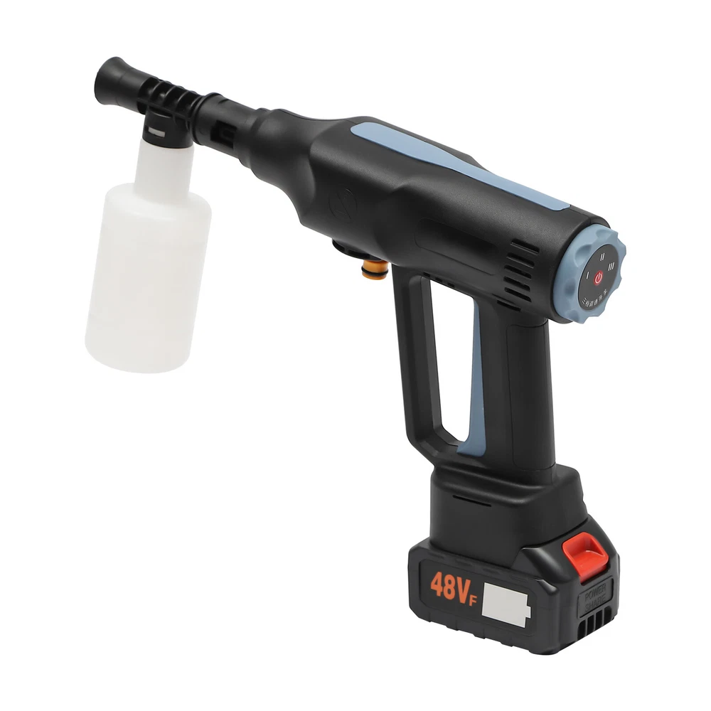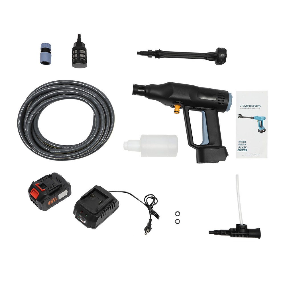 Application It Is Ideal for Garden Watering, Agricultural Irrigation, Car Washing, Household Cleaning, Etc. It Is the Best Pressure Washer for Outdoor Camping and Long Trips Specification Color: Black and Blue Material: Plastic, Copper, Pvc Assembly Required: Yes Current: 8-14a Voltage: 110v Lithium Battery Voltage: 48vf Power: 380w Speed: 30000r/Min Maximum Flow: 13.5l/Min /4.725 Gallons/Min Maximum Pressure: 2.2mpa Maximum Inlet Temperature: 60 ℃ Injection Stroke: 6-10m/19.7-32.8ft Water Pipe Length: 5m/16.4ft High-pressure Pump Drive Input Power: ≤ 10kw Battery Capacity: 15000mha Peak Pressure: 50bar Endurance: 38-52min Charging Time: 2-3h Water Output: 6l / Min / 2.1gallons/Min Waterproof Rating: Ipx7 Product Length: 50cm/19.7in Product Height: 28cm/11.02in Electric High Pressure Water Spray Car Gun Cordless Portable Yard Washer Cleaner DESCRIPTION 1 Battery Pressure Washer, Portable Pressure Washer, Cordless Pressure Washer with 6-in-1 Nozzle, Electric Powered Washer for Car/Fence/Floor Cleaning & Watering Description Cordless Pressure Washer with 6-in-1 Nozzle Are You Still Bothered by the Queue for the Car Wash? Are You Still Bothered by the Increasingly High Charges for Car Washes? Choose This Cordless Handheld Washer, the Six-in-one Design and Intelligent Identification of the Water Discharge Function Allows You to Wash Your Car Easily at Home. in Addition, It Is Very Versatile, Not Only Can Wash the Car but Also Can Clean the Steps, Wash the Yard, Walls, Cowshed, Etc. Key Features Excellent Performance: Equipped with a Double Layer of High-quality Filters, It Can Better Filter the Water Impurities, so You Do Not Have to Worry About the Water Problem in the Countryside and Car Wash Without Fear. Six-in-one Nozzle: the Nozzle of This Car Wash Supports Six Models, Which Can Be Freely Switched Between 0° Nozzle, 15° Nozzle, 25° Nozzle, 40° Nozzle, Shower Nozzle, and Spray Nozzle to Meet Your Various Car Wash Needs in Daily Life. Safety and Saving: This Car Washer Uses a Brushless Motor, Which Can save 1/3 of the Electricity than a Brush Motor. It Is Also Equipped with a High-quality Ternary Lithium Battery, 15000mah Battery Capacity, and Strong Endurance to Ensure That You Complete the Cleaning Task. What's More, It Also Has Over-current Protection and Charge/Discharge Protection. Smart and Scientific: It Can Quickly Release Water in About 3 Seconds and Comes with an Automatic Stop-start Button and Battery Disassembly Button for Easy Use. Automatic Mode and Economic Mode Allow You to Freely Choose to save Energy or Reduce Cleaning Costs Efficient Heat Dissipation: the Body of This Car Washer Has Multiple Heat Dissipation Holes, Which Can Quickly Dissipate the Heat from the Body to Prevent the High Temperature from Burning the Body and Effectively Extend Its Life. Adjustable Speed: Its Water Pressure Speed Can Be Adjusted to Three Levels, High, Medium, and Low, to Meet Your Needs for Cleaning Different Products. Safe and Secure: It Has Ipx7 Waterproof Grade, so Even If You Accidentally Spill Water on the Product During Use, It Won't Have Much Effect, so You Can Use It with Greater Peace of Mind. Self-priming Dual-use: Its Pump Can Be Connected to Both Faucets and Buckets Even Bottles, Solving the Difficulties of Low Water Pressure, so You Can Easily Clean Your Car. Solid and Durable: the Thickened Housing and Pure Copper Motor Are Strong and Stable, Not Easy to Damage and Corrosion, but Also Greatly Improve the Stability and Extend the Service Life of the Product. Protective Shipping: It Is Shipped in a Neutral Cardboard Box on the Outside and Protective Foam on the Inside, Which Protects the Shipping Throughout and Allows the Product to Be Delivered to You Safely. It Is Also Equipped with Its Own Carrying Case to Store All Accessories and Facilitate Your Daily Use. Details Soap Bottle: the Product Is Equipped with a Soap Bottle, a Special Soap Bottle with a Larger Spray Range, and More Convenient Foam Decontamination. in Addition, It Can Also Be Used to Fill Pesticides and Help You Manage Your Garden. Quick Connect to Interface: the Remove and Connect Are Very Convenient, but Also Connected Very Tight so As Not to Leak. Rounded Corners: the Corners Have Been Polished to Become Smooth and Rounded, Reducing the Risk of You Being Accidentally Bumped at Work. Thoughtful Handle: the Ergonomic Design of the Handle, You Will Not Be Tired of Pressing for a Long Time, Very Thoughtful. Charger with Indicator Light: the Indicator Light on the Battery Indicates the Charging Status of the Battery. When the Battery Indicator Is Red, It Means the Battery Is Charging, and When the Battery Indicator Changes from Red to Green, It Means the Charging Is Completed. Thickened Water Pipe: the Pvc Water Pipe Is Thickened for Sturdiness and Durability, While the Length of 16.4ft Allows for a Wide Range of Flexible Cleaning. Application It Is Ideal for Garden Watering, Agricultural Irrigation, Car Washing, Household Cleaning, Etc. It Is the Best Pressure Washer for Outdoor Camping and Long Trips Specification Color: Black and Blue Material: Plastic, Copper, Pvc Assembly Required: Yes Current: 8-14a Voltage: 110v Lithium Battery Voltage: 48vf Power: 380w Speed: 30000r/Min Maximum Flow: 13.5l/Min /4.725 Gallons/Min Maximum Pressure: 2.2mpa Maximum Inlet Temperature: 60 ℃ Injection Stroke: 6-10m/19.7-32.8ft Water Pipe Length: 5m/16.4ft High-pressure Pump Drive Input Power: ≤ 10kw Battery Capacity: 15000mha Peak Pressure: 50bar Endurance: 38-52min Charging Time: 2-3h Water Output: 6l / Min / 2.1gallons/Min Waterproof Rating: Ipx7 Product Length: 50cm/19.7in Product Height: 28cm/11.02in Base Size: 10.5*8cm/4.1*3.15in Carrying Case Size: 40*29*15cm/15.75*11.4*5.91in Package Size:15*43*32cm/5.91*16.93*12.6in Net Weight: 3.5kg/7.7 Lbs Gross Weight: 3.91kg/8.62 Lbs Role of Each Nozzle: Tip 0° (Cutting Tips): Provides a Concentrated Flow That Can Be Planned or Cut. Great for Removing Stains from Concrete