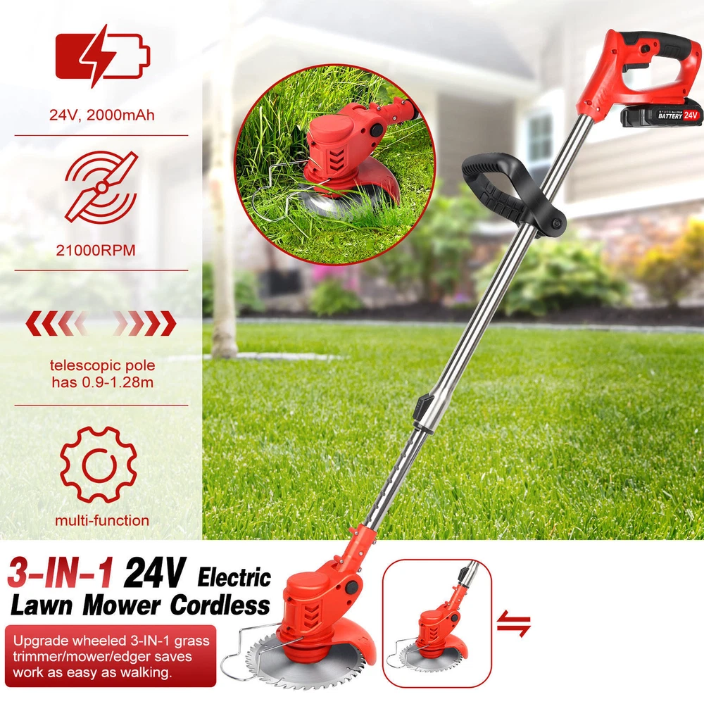 Descriptions: 【POWERFUL ELECTRIC WEED EATER CORDLESS】 【3-IN-1 ELECTRIC GRASS CUTTER】 【ADJUSTABLE DESIGN& 90°HEAD DESIGN】 Specification: Motor: 800W No load speed: 8500 RPM Battery: 21V 2000 mAh Lithium Battery * 2 Charging time: around 2-3 hours/ per battery No loading time:120-150mins Working cutting time: 30 to 60 minutes Package List: 1 * cordless grass trimmer 2 * stainless steel blades 1 * 6 inch alloy saw blade 5 * plastic blades 2 * Batteries 1 * battery charger 1 * small rotating wrenches 1 * manual Electric Lawn Edger Cordless Weed Grass Trimmer Cutter Eater w/ 2 Battery USA D escriptions: 【 POWERFUL ELECTRIC WEED EATER CORDLESS】 The stringless electric weed eater battery powered , featured with grass trimming & bush trimmer & lawn edger function. easy for different cutting jobs, not limited by wires, you can mow anywhere. Includes 2pcs 2000mAh and 800W high-power pure copper motor, 8500 RPM engine speed.Detachable wheels for more functionality when gardening! improve work efficiency. 【 3-IN-1 ELECTRIC GRASS CUTTER】 The electric weed trimmer with 3 types of blades: plastic blades for mowing delicate grass, Stainless steel metal blades are well for weeds small shrubs pruning; 40 tooth alloy saw blades are great for cutting thicker shrub, branches, sapling. Ideal for trimming around yards and bushes, lots, flower beds, walkways, patios.(To avoid damage to the blade, please choose the correct blade when weeding) 【 ADJUSTABLE DESIGN& 90°HEAD DESIGN】 The wcordless weed wackeris equipped with an adjustable rod, which can be adjusted freely from 35 to 50 inches.90 degrees adjustable grass trimmer can rotate into different positions, which helps you slope sections of the lawn and get into hard-to-reach corners with ease,Get going right away on yard work, lawn care, and other around the house projects. Specification : Motor: 1000W No load speed: 18000 RPM Battery: 21V 2000 mAh Lithium Battery * 2 Charging time: around 2-3 hours/ per battery No loading time:120-150mins Working cutting time: 30 to 60 minutes Package List: 1 * cordless grass trimmer 2 * stainless steel blades 1 * 6 inch alloy saw blade 5 * plastic blades 2 * Batteries 1 * battery charger 1 * small rotating wrenches 1 * manual Payment Shipping Return Contact us About us Payment 1.Paypal, Credit Card, G Pay etc, many payment way is accepted. 2.Please be sure your shipping address is correct before make a payment. Shipping 1.We are shipping from multiple warehouses (Houston, Texas/ Corona, California) , please note before placing an order 2.We will ship out the item within 1-3 business days after comfirming the payment, appreciate your patience. 3.If the items are broken on the way( we will check the orders clearly before we sent them ),please contact us in 3 days you received it. We will send you a new one or refund your payment. Return 1.We stand behind every buyer.Items can be returned for exchange or refund within 30 days. 2.Please contact us when you have any confusion of our item, we will solve the trouble for you as soon as possible. Contact us 1.This is professional Seller.We will reply your message within 24 hours. 2.Please contact us whenever you have any question about the item. We will deal with it as soon as possible. 3. If you are unhappy with the item or our service,please Contact Us before leave feedback,just give me a chance,thank you! About us 1. Unless specified otherwise, all our products are IN STOCK and are shipped from Local warehouse - Not Overseas! 2. We provide a 30 day Satisfaction Guarantee or your money back (provided items are in the same new and resaleable condition.) 3. We have a PayPal Verified Business Account, please buy with Confidence! 4. Every item will be tesrted before send.We know our products well and if we don't have the answers we will do our best to find them for you! 5. Our friendly team look forward to serving you! Your satisfaction is our No.1 Priority We will do our best to satisfacy you.