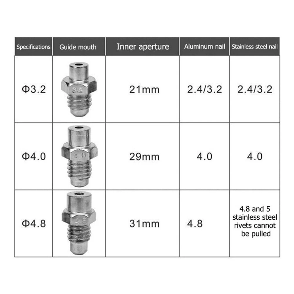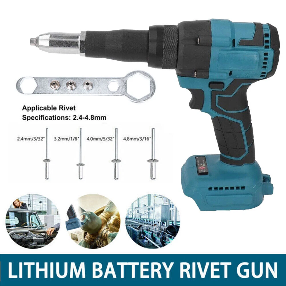 Note: Battery And Charger Not Included Suitable for Makita 18V lithium battery 18V: BL1815 BL1830 BL1840 BL1845 BL1860 and so on Tips: BL1415G BL1430G BL1815G BL1830G and all G series battery is not supported Specification: Brushless Electric Rivet Gun Maximum Output Power: 360W Maximum Pulling Tension: 10000N Stroke: Approx. 20mm / 0.79in Applicable Rivet Specifications: Approx. 2.4-4.8mm / 0.1-0.2in Package List: 1 x Rivet Gun 1 x Wrench 1 x Instruction Manual