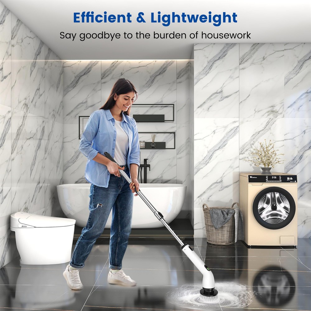 This electric spin scrubber is a game-changer for cleaning! The adjustable speeds and powerful motor make scrubbing effortless, while the long battery life ensures no interruptions. The extendable handle and multiple brush heads reach every corner, and the waterproof design is perfect for showers. No more sore arms—just quick, sparkling results! Highly recommend for an easier, deeper clean.