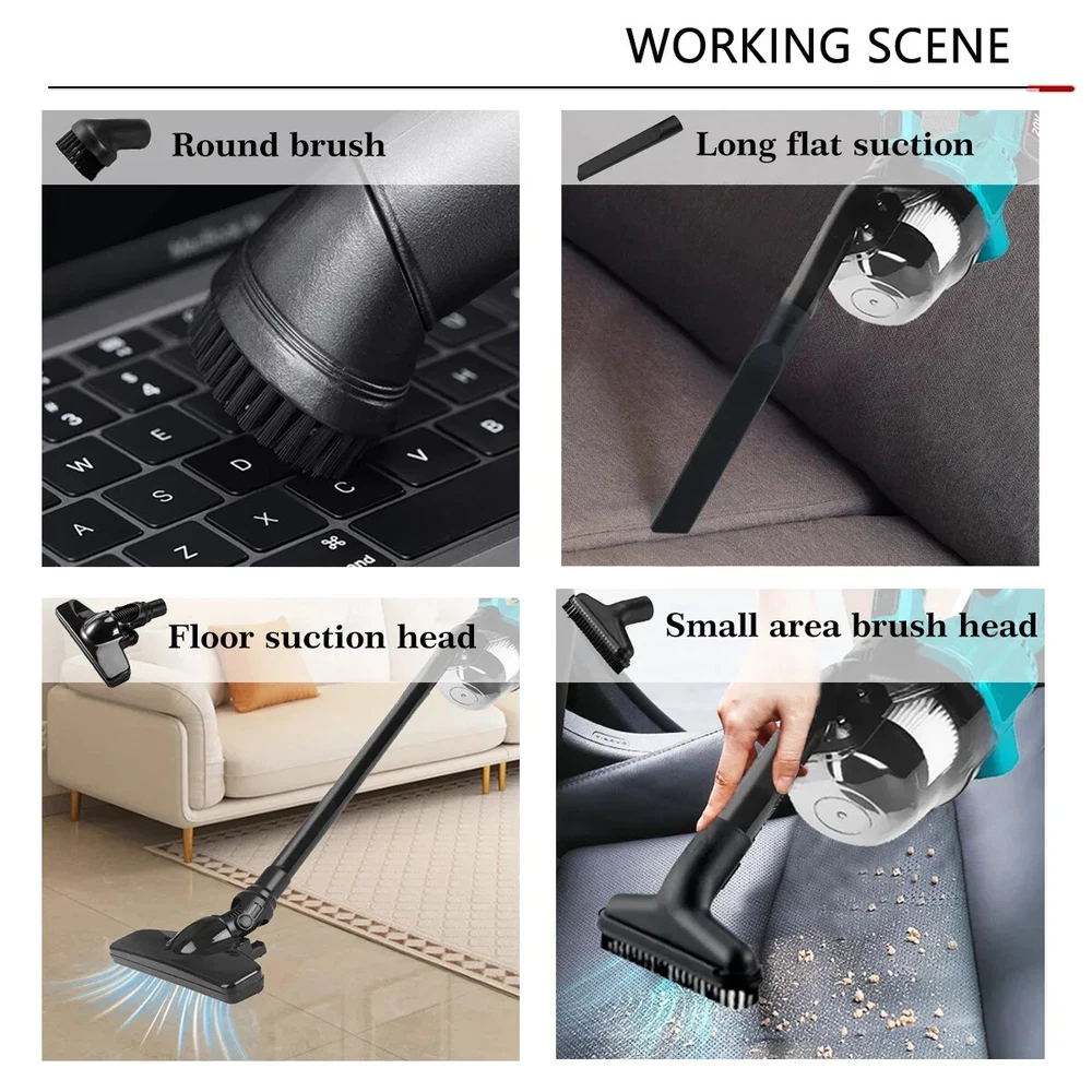 Please note: 1. The options do not include batteries. please prepare the batteries by yourself. 2.In transit, the carton may be slightly broken or the product will have slight scratches, which is normal. Please do not place an order if you mind. 3.If there are any issues with the received product, please contact us as soon as possible, and we can help you solve the problem.Thank you Specifications: Color: Blue Tank Capactity:23.6oz/0.7L Max.airflow rate:0.8m³/min Led Light:yes Bare weight:2.45kg Sound pressure:72-89dB Features: 1.High-horsepower copper core motor provides powerful suction 2.0.7L Tank Capacity allows for maximum debris pick up without the need for regular tank empties Replaceable/Washable Filters guarantees filter can be kept clean and working at full efficiency over longer periods of time 3.Cordless design, ergonomic design and pleasant handle, our vacuum cleaner gives you complete and comfortable mobility. 4.Cyclonic Action ensures debris is directed away from the filter ensuring maximum suction performance is maintained over longer periods of use 5.Easy Clean indoor indoor and outdoor. clean dust/hair waste from bedding, corners, car,bed bottoms, carpets, furniture, etc. Notice: 1.Please allow 1-2cm error due to manual measurement. 2.The colors may have different as the difference display,please understand. without battery Packing included: 1 x Cordless dry handle vacuum (Batteries not included) 1 x Tool Kit