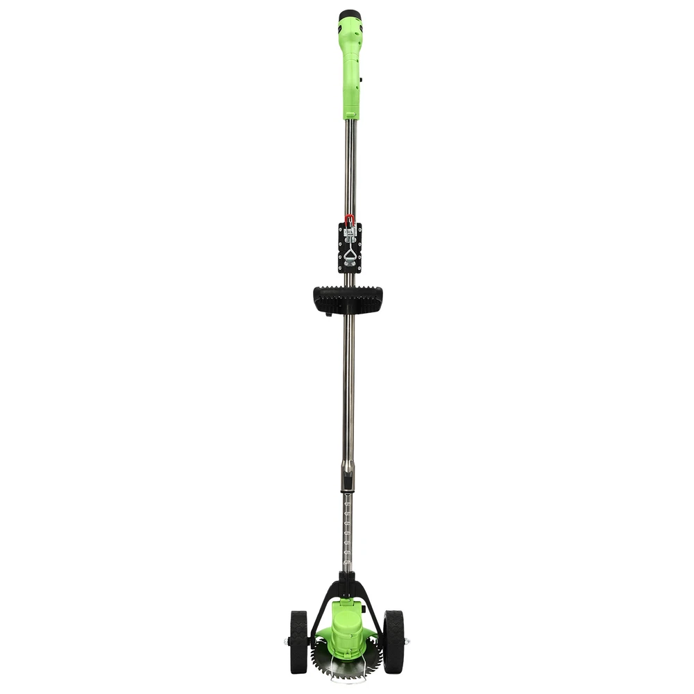 Specifications Material: ABS, Alloy, Plastic,SK5 Color: Black, Green Style: Modern Plug Type: US Standard Motor Type: Pure Copper Motor Power Source:Battery Powered Assembly Required: Yes AC: 100-250V 47-63Hz Current: 0.8A Output: 12.6V-1A Max. Motor Power: 200W Battery Type: 1*3 Cells 1300mAh Li-ion Battery (Included ) Operating Lever Adjustable Height: 0.9-1.25m/2.95-4.1ft Circular Saw Blade Diameter: 10.2cm/4in Speed: 18000rpm Charging Time: 1h Working Time: 15-20mins Head Adjustable Angle: 90° Product Height: 0.91-1.28m/3-4.2ft Each Wheel Diameter: 13cm/5.1in Distance Between Two Wheels: 23cm/9in Gross Weight: 1.8kg/4lbs Package Size: 89*15*15cm/35*5.9*5.9in Package Included 1* Cordless Grass Trimmer 8* Blades 1* Battery 1* Battery Charger Cordless Electric Weed Lawn Eater Edger Yard Grass String Trimmer Cutter Mower Description Traditional trimmers that are gasoline -powered or need to be plugged in for use are uneconomical and more restrictive in use. Our cordless grass trimmer with rechargeable lithium battery and high-strength blades is an excellent assistant for you to prune lawns and care for your lawn and garden . Key Features High-quality Material: The product is mainly made of ABS, alloy, plastic, and SK5, which has high hardness, corrosion resistance, high-temperature resistance, impact resistance , and long service life. High Efficiency: The high-quality 200W pure copper motor provides the product with super high unloaded speed (18000rpm), and the 4in-diameter saw blade can provide you with a wider cutting range, thus improving your work efficiency. Convenient to Use: It is equipped with three different types of blades to meet different work needs. Plastic blades are suitable for trimming garden lawns. The leaf-shaped alloy blade is suitable for trimming weeds in complex terrain. The circular alloy saw blade can be used to cut crops, shrubs, etc. Safety Protection: The grass guard can effectively prevent the broken grass from splashing around when mowing the lawn and prevent accidental trimming of plants, lawn decorations, and other sensitive areas of your yard, together with gloves and goggles, ensuring your safety. The safety switch can prevent accidental start-up and ensure user safety. You need to simultaneously press the safety button and the switch to start the machine. Comprehensive Mowing: You can press the button on the head to adjust the angle at 90° for flexible weed removal in edges and corners, and it will automatically be locked when you release the knob. Automatic Line Feed: The grass trimmer can automatically feed the line as needed and works smoothly without interruption. Cordless Convenience: With one 3 cells 1300mAh li-ion battery allowing for almost 20mins of continuous working after about 1h of charging , you can cover larger areas without the hassle of tangled cords or cords reaching their limit. The equipped charger ensures timely charging for the battery. User-friendly Design: The operating lever can be adjusted to different lengths (2.95-4.1ft) by the telescoping button to meet the needs of people of different heights, avoiding bending down and reducing the burden on your waist. It weighs only 4 lbs, allowing for operation with one hand, even for the elderly and women. Easy to Move and Store: It is foldable and comes with two wheels, making it easy for you to move and store it, taking up less space. Guaranteed Customer Service: Our friendly customer service team would be happy to solve your issues with our product. If you have any issues, please feel free to reach out to us. Details Grass Retaining Ring: It prevents the rolled grass, reduces the failure rate of the product, and protects it for a long time. Auxiliary Handle: It's comfortable with a non-abrasive grip and you can adjust its position as you like, bringing you more convenience during operation. Heat Dissipation Hole: The heat-sink holes on the housing can effectively speed up the heat dissipation of the motor to ensure smooth and efficient operation. Application It's suitable for yard trimming, park greening, home lawn mowing, landscaping, orchard pruning, tea garden pruning, forestry cutting, cutting rice/wheat/corn stalks/bush/reed/barley, etc. How to Install Install the grass guard and rotate to the right. Tighten with a wrench. Install the blade. Mount nuts& washers. Tighten with a wrench head. Fasten the two wheels to the left and right sides of the operating lever. Fix with screws. Specifications Material: ABS, Alloy, Plastic,SK5 Color: Black, Green Style: Modern Plug Type: US Standard Motor Type: Pure Copper Motor Power Source:Battery Powered Assembly Required: Yes AC: 100-250V 47-63Hz Current: 0.8A Output: 12.6V-1A Max. Motor Power: 200W Battery Type: 1*3 Cells 1300mAh Li-ion Battery (Included ) Operating Lever Adjustable Height: 0.9-1.25m/2.95-4.1ft Circular Saw Blade Diameter: 10.2cm/4in Speed: 18000rpm Charging Time: 1h Working Time: 15-20mins Head Adjustable Angle: 90° Product Height: 0.91-1.28m/3-4.2ft Each Wheel Diameter: 13cm/5.1in Distance Between Two Wheels: 23cm/9in Gross Weight: 1.8kg/4lbs Package Size: 89*15*15cm/35*5.9*5.9in Package Included 1* Cordless Grass Trimmer 8* Blades 1* Battery 1* Battery Charger 1* Goggles 2* Wheels 1Pair* Gloves Other Accessories for Assembly Notes Please charge the batteries fully before the first time you use this product. Please pay attention to safety in use, wear protective measures, stay away from the crowd and your body, and avoid being injured by the blade. Please unload the battery immediately after use to keep the power off. It is forbidden to replace the blade when the power is on! Please allow the slight color difference caused by the shooting light and 1-3cm error due to manual measurement, and make sure you do not mind before you order. Payment Delivery details Terms of sales About us Contact us Payment We accept ebay payment 。 Fees such as import duties, taxes are not included in the item price or shipping costs. Thes