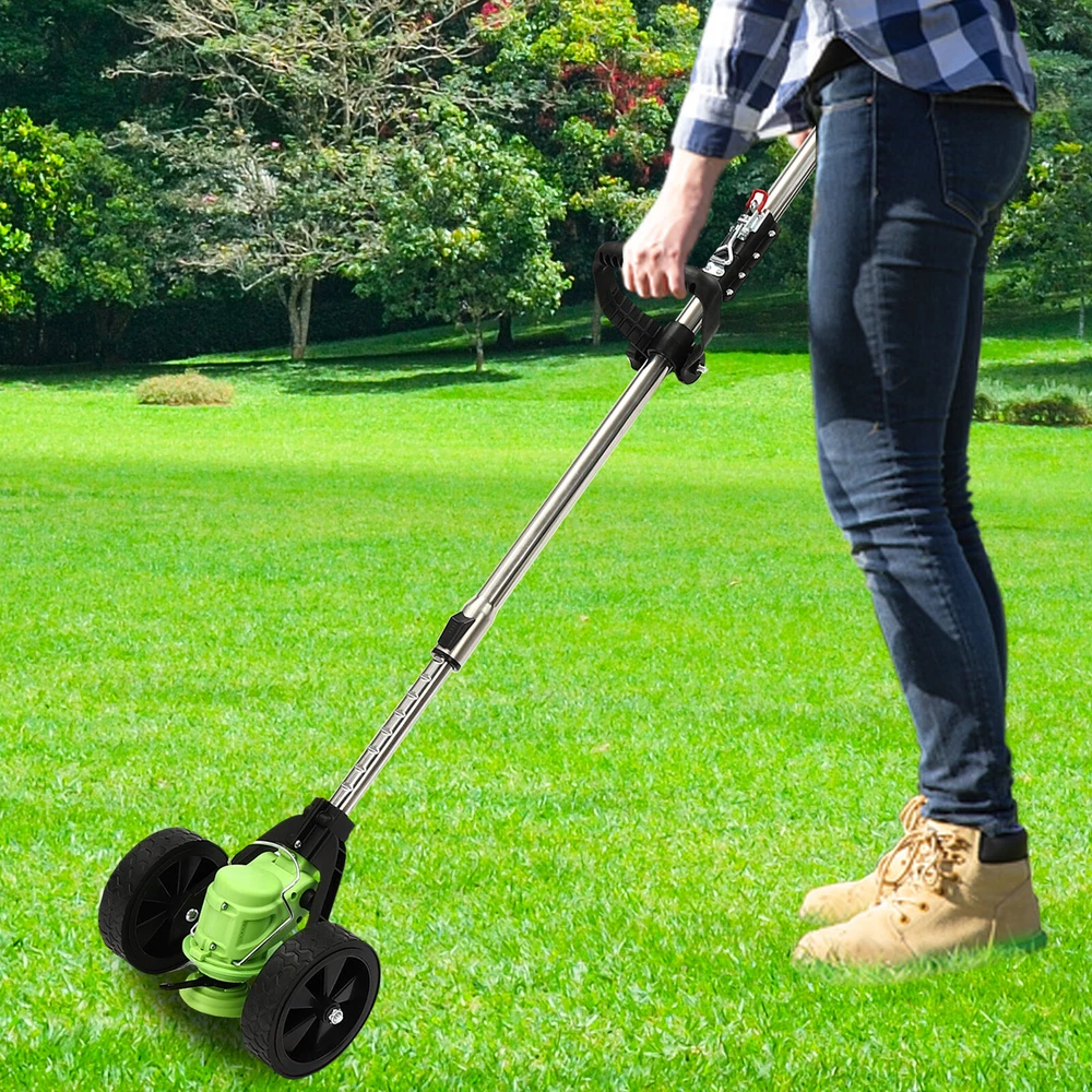 Specifications Material: ABS, Alloy, Plastic, Stainless Steel Color: Black, Green Style: Modern Plug Type: US Standard Motor Type: Pure Copper Motor Power Source:Battery Powered Assembly Required: Yes AC: 100-250V 47-63Hz Current: 0.8A Output: 12.6V-1A Max. Motor Power: 200W Battery Type: 1*3 Cells 1300mAh Li-ion Battery (Included ) Rotational Speed: 12000R/min Operating Lever Adjustable Height: 0.9-1.25m/2.95-4.1ft Circular Saw Blade Diameter: 10.2cm/4in Charging Time: 30min Working Time: 25min Head Adjustable Angle: 90° Product Height: 0.91-1.28m/3-4.2ft Each Wheel Diameter: 13cm/5.1in Distance Between Two Wheels: 23cm/9in Gross Weight: 1.8kg/4lbs Package Size: 89*15*15cm/35*5.9*5.9in Package Included 1* Cordless Grass Trimmer 8* Blades 1* Battery 1* Battery Charger Cordless Foldable Lithium Mower W/ Wheels Green Mini-mower Grass Trimmer Yard Description Traditional trimmers that are gasoline -powered or need to be plugged in for use are uneconomical and more restrictive in use. Our cordless grass trimmer with rechargeable lithium battery and high-strength blades is an excellent assistant for you to prune lawns and care for your lawn and garden . Key Features High-quality Material: The product is mainly made of ABS, alloy, plastic, and stainless steel, which has high hardness, corrosion resistance, high-temperature resistance, impact resistance , and long service life. High Efficiency: The high-quality 200W pure copper motor provides the product with super high unloaded speed (12000rpm), and the 4in-diameter saw blade can provide you with a wider cutting range, thus improving your work efficiency. Convenient to Use: It is equipped with three different types of blades to meet different work needs. Plastic blades are suitable for trimming garden lawns. The leaf-shaped alloy blade is suitable for trimming weeds in complex terrain. The circular alloy saw blade can be used to cut crops, shrubs, etc. Safety Protection: The grass guard can effectively prevent the broken grass from splashing around when mowing the lawn and prevent accidental trimming of plants, lawn decorations, and other sensitive areas of your yard, together with gloves and goggles, ensuring your safety. The safety switch can prevent accidental start-up and ensure user safety. You need to simultaneously press the safety button and the switch to start the machine. Comprehensive Mowing: You can press the button on the head to adjust the angle at 90° for flexible weed removal in edges and corners, and it will automatically be locked when you release the knob. Automatic Line Feed: The grass trimmer can automatically feed the line as needed and works smoothly without interruption. Cordless Convenience: With one 3 cells 1300mAh li-ion battery allowing for almost 25 minutes of continuous working after about 30 minutes of charging , you can cover larger areas without the hassle of tangled cords or cords reaching their limit. The equipped charger ensures timely charging for the battery. User-friendly Design: The operating lever can be adjusted to different lengths (2.95-4.1ft) by the telescoping button to meet the needs of people of different heights, avoiding bending down and reducing the burden on your waist. It weighs only 4 lbs, allowing for operation with one hand, even for the elderly and women. Easy to Move and Store: It is foldable and comes with two wheels, making it easy for you to move and store it, taking up less space. Guaranteed Customer Service: Our friendly customer service team would be happy to solve your issues with our product. If you have any issues, please feel free to reach out to us. Details Grass Retaining Ring: It prevents the rolled grass, reduces the failure rate of the product, and protects it for a long time. Auxiliary Handle: It's comfortable with a non-abrasive grip and you can adjust its position as you like, bringing you more convenience during operation. Heat Dissipation Hole: The heat-sink holes on the housing can effectively speed up the heat dissipation of the motor to ensure smooth and efficient operation. Application It's suitable for yard trimming, park greening, home lawn mowing, landscaping, orchard pruning, tea garden pruning, forestry cutting, cutting rice/wheat/corn stalks/bush/reed/barley, etc. How to Install Install the grass guard and rotate to the right. Tighten with a wrench. Install the blade. Mount nuts& washers. Tighten with a wrench head. Fasten the two wheels to the left and right sides of the operating lever. Fix with screws. Specifications Material: ABS, Alloy, Plastic, Stainless Steel Color: Black, Green Style: Modern Plug Type: US Standard Motor Type: Pure Copper Motor Power Source:Battery Powered Assembly Required: Yes AC: 100-250V 47-63Hz Current: 0.8A Output: 12.6V-1A Max. Motor Power: 200W Battery Type: 1*3 Cells 1300mAh Li-ion Battery (Included ) Rotational Speed: 12000R/min Operating Lever Adjustable Height: 0.9-1.25m/2.95-4.1ft Circular Saw Blade Diameter: 10.2cm/4in Charging Time: 30min Working Time: 25min Head Adjustable Angle: 90° Product Height: 0.91-1.28m/3-4.2ft Each Wheel Diameter: 13cm/5.1in Distance Between Two Wheels: 23cm/9in Gross Weight: 1.8kg/4lbs Package Size: 89*15*15cm/35*5.9*5.9in Package Included 1* Cordless Grass Trimmer 8* Blades 1* Battery 1* Battery Charger 1* Goggles 2* Wheels 1Pair* Gloves Other Accessories for Assembly Notes Please charge the batteries fully before the first time you use this product. Please pay attention to safety in use, wear protective measures, stay away from the crowd and your body, and avoid being injured by the blade. Please unload the battery immediately after use to keep the power off. It is forbidden to replace the blade when the power is on! Please allow the slight color difference caused by the shooting light and 1-3cm error due to manual measurement, and make sure you do not mind before you order. Payment Delivery details Terms of sales About us Contact us Payment We accept ebay payment 。 Fees such as import