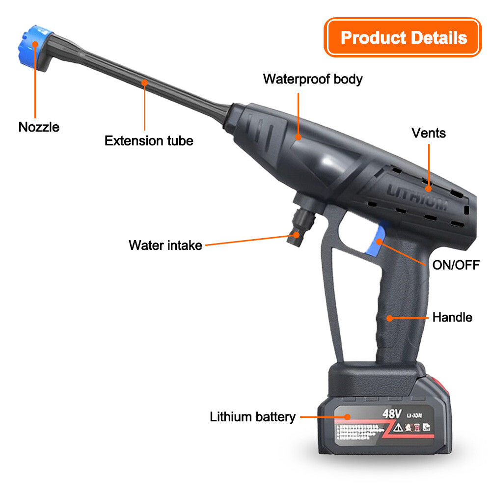 300W Cordless Electric High Pressure Water Spray Car Gun Portable Washer Clean