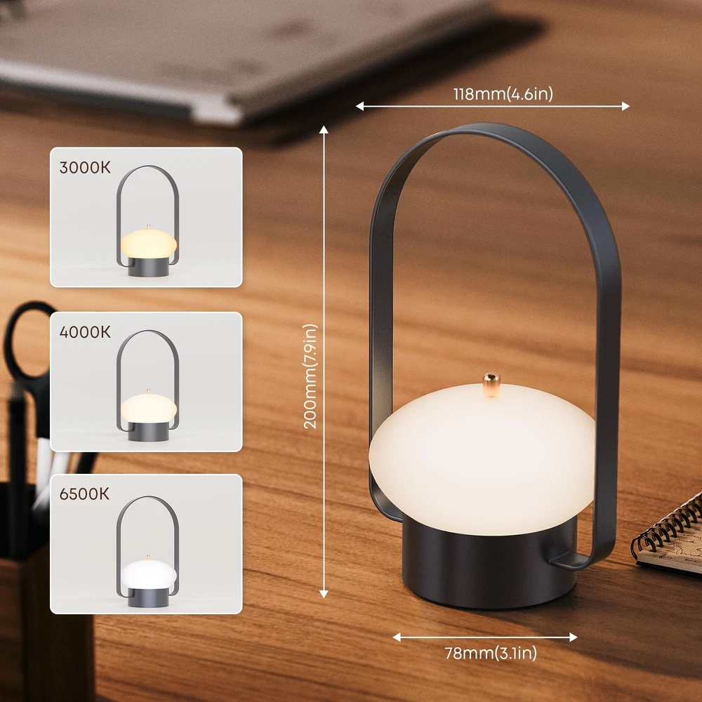 Cordless Lantern Table Lamp LED, Portable Camping Lantern Light Dimmable,Touch Lamp Rechargeable for Bedroom, Outdoor, 3 Color Temperatures, Blue Product Details Color: Navy Blue Brand: LROLTEF MPN: LT-PTL-G1-A1-BL UPC: Does not apply EAN: Does not apply Finish Type: Matte Bulb Base: Flanged Product Dimensions: 5.11"D x 4.5"W x 8.11"H Item Weight: 1.1 Pounds Lamp Type: Table Lamp Product Dimensions ‏ : ‎ 5.11 x 4.5 x 8.11 inches; 1.05 Pounds Item model number ‏ : ‎ LT-PTL-G1-A1-BL Batteries ‏ : ‎ 1 Lithium Ion batteries required. (included) Date First Available ‏ : ‎ June 20, 2024 Manufacturer ‏ : ‎ LROLTEF Country of Origin ‏ : ‎ China Customer Reviews: 4.5 4.5 out of 5 stars 12 ratings Finish Type: ‎Matte Bulb Base: ‎Flanged Product Dimensions: ‎5.11"D x 4.5"W x 8.11"H Item Weight: ‎1.1 Pounds Lamp Type: ‎Table Lamp Shade Color: ‎Blue Shade Material: ‎Metal Switch Type: ‎Touch Style: ‎Modern Brand: ‎LROLTEF Color: ‎Navy Blue Special Feature: ‎Dimmable Light Source Type: ‎LED Material: ‎Alloy Steel, Brass Room Type: ‎Entryway, Living Room, Bedroom Power Source: ‎Battery Powered Number of Light Sources: ‎1 Connectivity Technology: ‎USB Included Components: ‎Battery Is Waterproof: ‎false Bulb Shape Size: ‎A19 Mounting Type: ‎Tabletop Number of Items: ‎1 Lighting Method: ‎LED Control Method: ‎Touch Indoor/Outdoor Usage: ‎Indoor Efficiency: ‎Energy Efficient Voltage: ‎1.5 Volts Manufacturer: ‎LROLTEF Part Number: ‎LT-PTL-G1-A1-BL Item Weight: ‎1.05 pounds Country of Origin: ‎China Item model number: ‎LT-PTL-G1-A1-BL Batteries: ‎1 Lithium Ion batteries required. (included) Finish types: ‎Matte Special Features: ‎Dimmable Batteries Included?: ‎Yes Batteries Required?: ‎Yes Date First Available: June 20, 2024 ELEGANT NIGHT LIGHT: The light casts a golden hue that reaches into every room of your home: living room, entryway, bedroom, courtyard. Its elegant design and innovative character makes it easy for you to take the lamp with you everywhere, illuminating any space in your home or outside with a soft, warm light. COLOR CHANGING LAMP: By touching the top of the touch lampshade you can switch three dimmable colors of warm light, white light and neutral light. By long pressing you can get adjustable dimming that can be stored from 10% to 100% brightness. LONG TIME: This versatile LED night light offers a maximum brightness of 10 hours on the brightest setting and a low brightness mode that can last up to 48 hours. It has a 2000 mAh rechargeable battery which guarantees long-time use and prolongs battery life. PORTABLE AND VERSATILE LAMP: The streamlined brass handle and lightweight design of the lantern allow you to take it anywhere with ease, such as camping, barbecues, outdoor parties. Made of quality steel with non-slip background with greater ease on hand for parties, barbecues, camping... PRODUCT WARRANTY: We want to convey an unexpressed warmth to our customers through each lamp. All our lamps come with a full 2 year warranty. For any problem please contact us at any time.