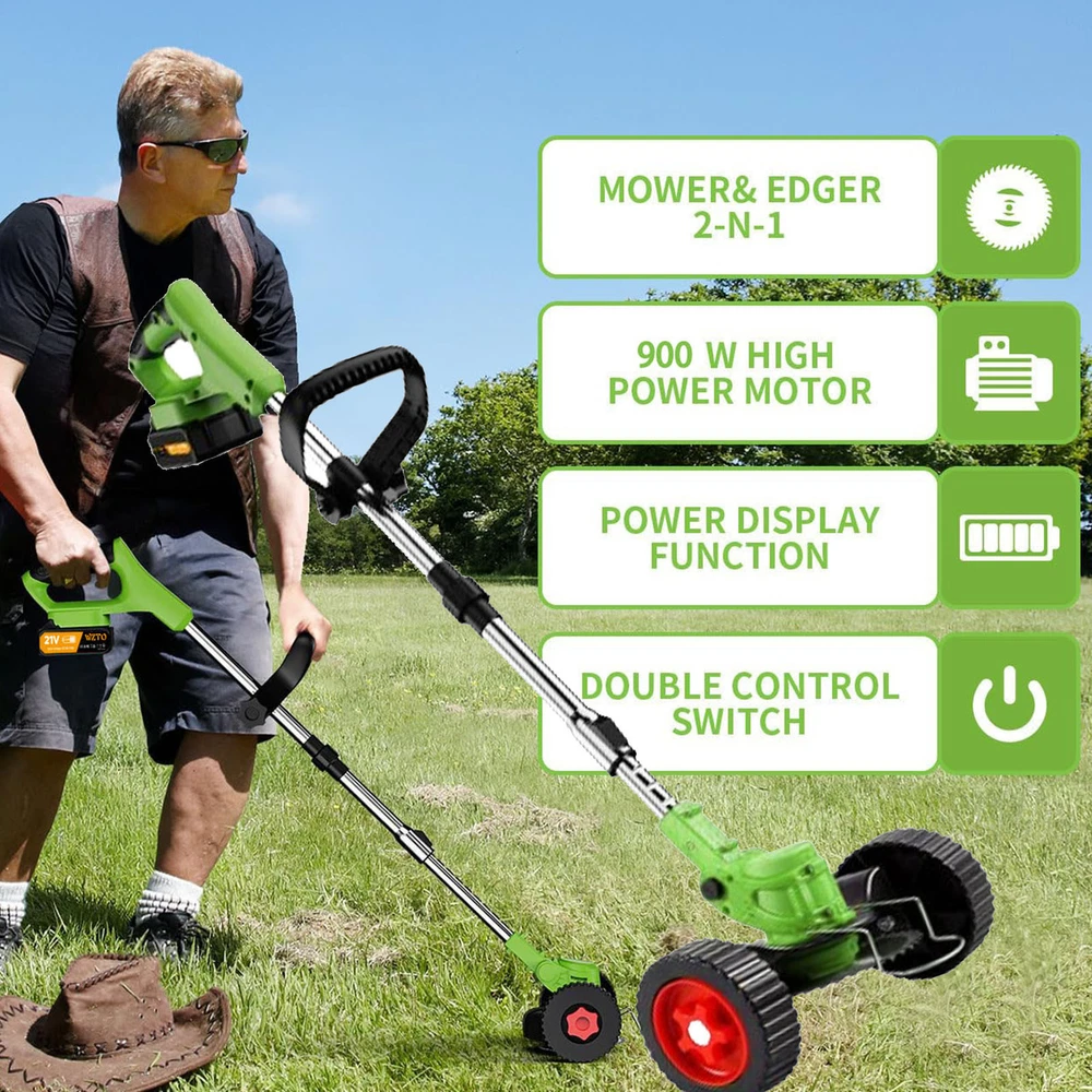 Voltage: 21 V Model: Weed Trimmer Item Length: Item Length Product 3: String Trimmer Charging time: About 2-3 Hour Brand: Cutever Bundle Description: Cordless Electric Grass Trimmer Type: String Trimmer Unextended length: 900mm MPN: Does Not Apply Product 5: Grass String Trimmer Using time: About 90-150 Minutes Product 8: Grass Trimmer Cordless Assembly Required: Yes Manufacturer Warranty: 3 Years Power: 900W Noise Level: 70 dB gtin13: Does not apply Horsepower: 2 Battery 1 Charger Cutting diameter: 150mm/5.9inces Item Height: Item Height Product 9: Electric Weed Trimmer Speed: 20000 U / Min Product 4: Cordless Weed Eater Extended length: 1200mm Accessories Included: Blade Set, User Manual, 2 Batteries, 8 Blades, Edger, String Trimmer, Charger Item Weight: Item Weight Style: Modern Material: Alloy Steel, Aluminum, Plastic, Stainless Steel Features: Adjustable Grip, Adjustable Head, Aluminum Knife Cover, Cordless, Ergonomic, Lightweight, Low Noise Level, Weed & Brush, Dual Control Switch, Telescopic Pole Item Width: Item Width Battery Included: Yes Product 6: Weed Trimmer Cordless Product 10: Electric Weed Trimmer Cordless Power Source: Battery UPC: Does not apply Product 7: String Trimmer Cordless Color: Green Tank Capacity: 0.25 gal Product 2: Weed Trimmer Product 1: Cordless Grass String Trimmer Attachments Included: Edger, Hedge Trimmer, String Trimmer