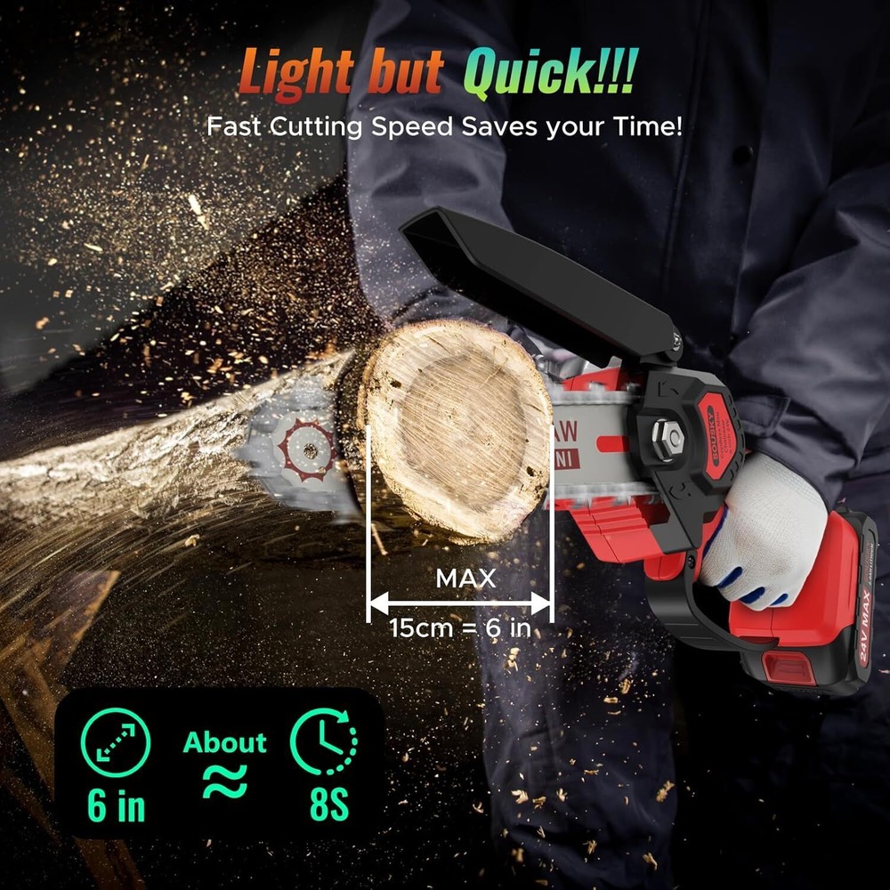$ 33.5Mini Cordless 6-Inch Chainsaw with Auto Oiling System and Battery
