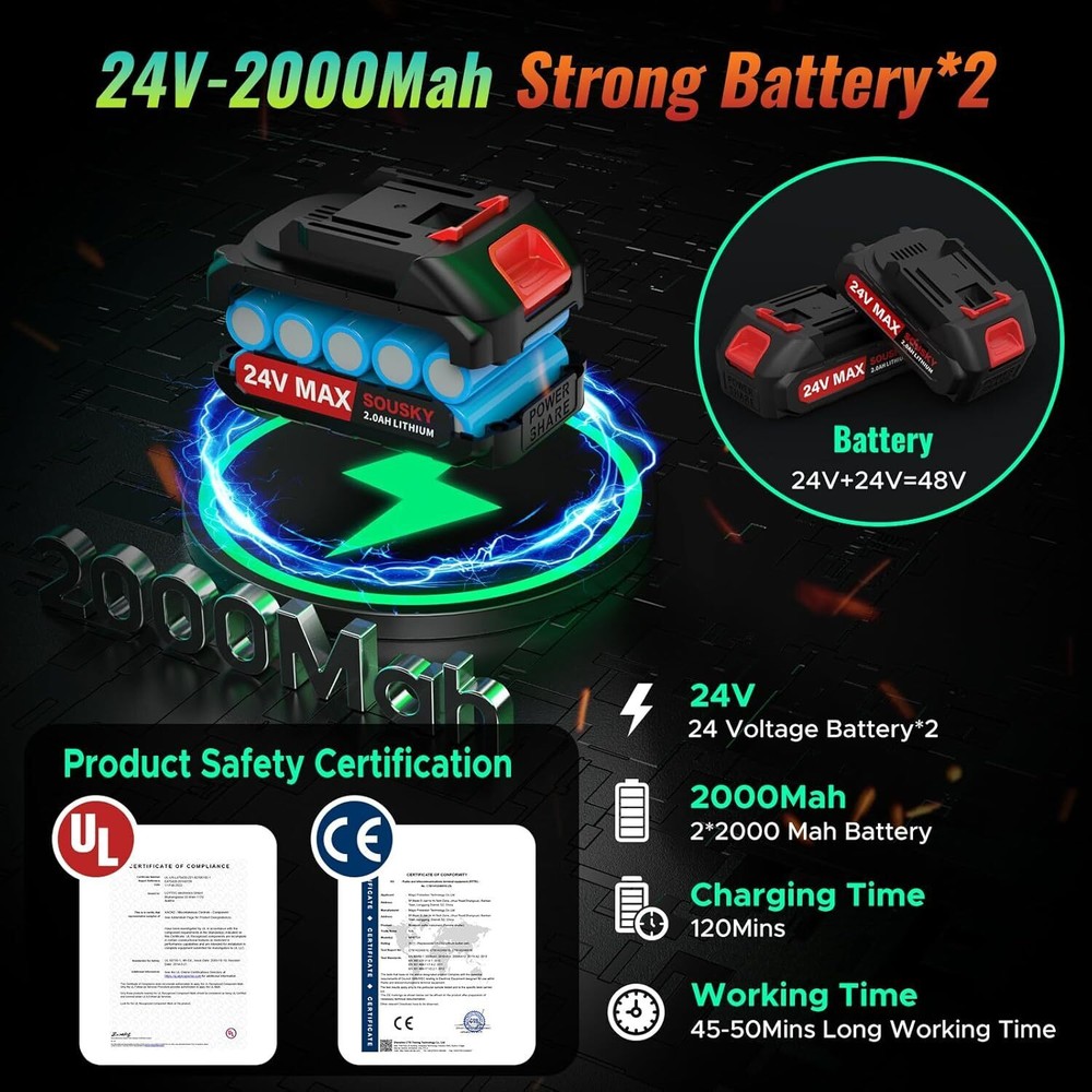 You may also like 14.5 Amp 18" Corded Electric Chainsaw 20332 cutting branches and logs Durable 119.92 USD 126.23 USD Free shipping 5% off About this item 【Auto Oiler Filling System】: This mini chainsaw cordless is equipped with an automatic chain lubrication system. Just pour oil into the oil hole (ordinary motor oil is fine) and press the small air pump to automatically lubricate the chain. Press once and use it all day long. Don't need to carry a heavy bottle of oil with you. Chain is more lubricated, cutting is smoother, work is more efficient, and the chainsaw consumes less energy! Warm reminder: oil is not included in the product 【Super Strong Cutting Ability】: The 6-inch mini chainsaw is equipped with 24V battery*2 and 700 high-power motor. The fierce steel chain and automatic oiling lubrication system make it as easy for you to cut wood as a hot knife through butter. It only takes 8 seconds for you to cut 6 inches of wood, and you can easily complete tree pruning, camping and gardening work. With a mini chainsaw, you not only save effort, but also save a lot of time. Time is money 【Powerful Battery*2】: This 6Inch cordless mini chainsaw is equipped with two 24V&2000Mah batteries. The powerful battery system allows the chainsaw to work for up to 45-50 minutes. Because the handheld mini chainsaw has a slim body and small size, it is comfortable to hold and will not get tired even after long-term use. It is very suitable for the elderly and women. Warm Reminder: Since the product is transported on the road for a long time, please fully charge it before your first use 【Multiple Safety Design】: Mini chainsaw has multiple safety protection devices: 1. High temperature protection: When the chainsaw is used for too long and becomes hot, it will start the automatic shutdown function. Leave it for cooling about 15 minutes, it can be restarted. 2. Safety lock: The safety lock prevents accidental activation (you need to unlock and start the switch button to start work) 3. A baffle to prevent debris from flying around, protect your eyes Feel free to answer your questions anytime. We offer 365 days of free replacement of products with defective quality, so you can buy our mini chainsaw with confidence › product details Brand:SOUSKY Item Weight:5. 6 Pounds Product Dimensions:17"L x 4"W x 8"H Manufacturer:SOUSKY UPC:739719229845 You may also like 25QT Insulated Cooler W/ Drain Plug Bottle Opener Ice Retention Adventure Ready 80.96 USD 85.22 USD Free shipping 5% off 13 Gallon Touchless Motion Sensor Trash Can Automatic Kitchen Waste Disposal New 39.44 USD 41.52 USD Free shipping 5% off Lockable Storage Trunk Durable Heavy Duty Tools Gear Outdoor Transport New 41.05 USD 43.21 USD Free shipping 5% off Foldable Carrying Case Propane Lanterns Durable Outdoor Storage Transport New 33.25 USD 35.0 USD Free shipping 5% off 6 Gallon Water Storage Container Portable Camping Hiking Heavy Duty Jug New 26.48 USD 27.87 USD Free shipping 5% off Smart Compatible Energy Efficient Etagere Floor Lamp W/ Frosted Torchiere Shade 39.73 USD 41.82 USD Free shipping 5% off Faux Marble Wastebasket Resin Trash Can Decorative Bathroom Item Indoor Use 26.46 USD 27.85 USD Free shipping 5% off 10.25 Inch Cast Iron Skillet Dual Handle Campfire Induction Oven Safe Cookware 27.83 USD 29.3 USD Free shipping 5% off Iced Tea Coffee Maker 2Qt Automatic Brewer Large Pitcher Simple Operation New 29.27 USD 30.81 USD Free shipping 5% off 12 Piece Dinnerware Set Ceramic Scalloped Edges Floral Microwave Dishwasher Safe 63.36 USD 66.69 USD Free shipping 5% off Premium 095 Trimmer Line 3lb Co-Polymer Fits Standard Heads No Tangles New 36.4 USD Free shipping Rechargeable 4V Precision Screwdriver Set 45-Piece W/ LED Lights Extensions New 25.68 USD 27.03 USD Free shipping 5% off