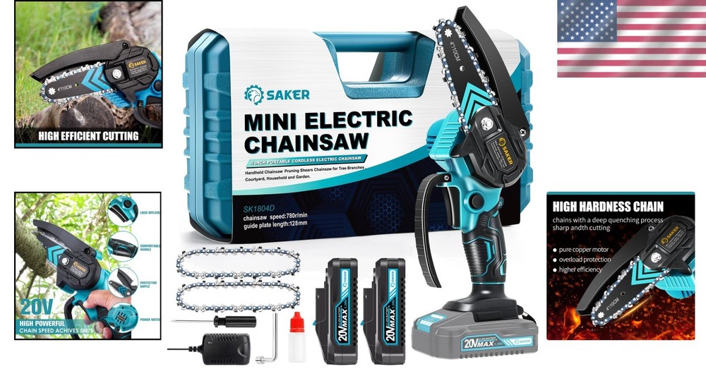 Cordless Mini Chainsaw with Safety Lock and Accessories