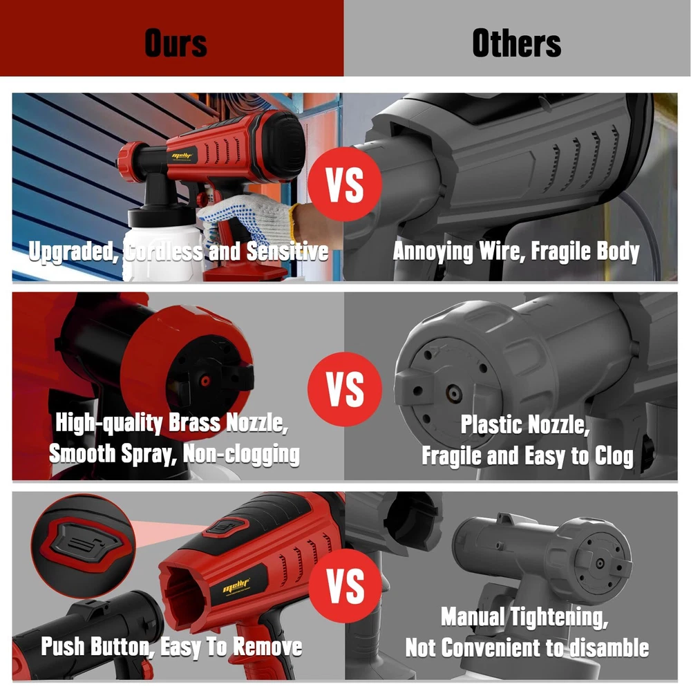Cordless Paint Sprayer for Milwaukee 18V Max Battery Upgraded HVLP TOOL ONLY The bbattery powered paint sprayer works with all Milwaukee 18V battery, we only sell tools, no battery in the package Cordless & Lightweight Design: Different from corded paint sprayers, Mellif cordless HVLP spray gun brings you convenience of outdoor operation without any annoying cable and wire, weights 2.2lbs, lightweight to allow you to work on any sites 3 Patterns & 3 Size Nozzles: There are 3 size nozzles(1mm,1.5mm,2.5mm) coming with electric paint gun, suitable for coatings with different viscosity and praying tasks. Equipped with 3 spraying patterns (vertical, horizontal, and circular), you can easily change them by adjusting air cap ear Brushless Motor & Adjustable Flow: The upgraded brushless motor provides enables it to spray up to 1,000 ml/min high speed, giving maximum viscosity of 120 DIN. Adjust flow control knob to adjust the flow rate to achieve variable spraying effect, get your job done faster So Easy to Use & Clean: The HVLP paint sprayer is easy to assemble or disassemble without any tools. A attached cleaning brush help you easily clean the remains of paint Wide Application: The portable paint sprayer allows you to spray various projects like home interior and exterior, coating doors, walls, fences, decking, cabinets, furniture, DIY work and etc. When you work on overhead or lying objects, turn the suction tube forwards or rearwards Warranty & Package: We provide 5-year warranty and our customer service is available 24/7, if you have any problem with our products, please contact us directly. The package includes 1 X Paint Sprayer, 1 X 800ml/25oz Container, 3 X Copper Nozzle, 1 X Cleaning Brush, 1 X Viscosity Cup, 2 X Gaskets of Container, 1 X User Manual Shipping We offer FREE shipping on all orders! We ship within Three business days of payment, usually sooner. We use a selection of shipping services such as UPS, FedEx, USPS etc. We only ship to the lower 48 states, no APO/FPO addresses or PO Boxes allowed. Local pickups and combined shipping options are not provided at this time. Return You can return a product for up to 30 days from the date you purchased it. Any product you return must be in the same condition you received it and in the original packaging. Please keep the receipt. Payment We accept payment by any of the following methods: PayPal Please pay as soon as possible after winning an auction, as that will allow us to post your item to you sooner! Feedback Customer satisfaction is very important to us. If you have any problem with your order, please contact us and we will do our best to make you satisfied. Contact Us If you have any queries, please contact us via ebay. We usually respond within 24 hours on weekdays. Please visit our eBay store to check out other items for sale! Thank you for shopping at our store.