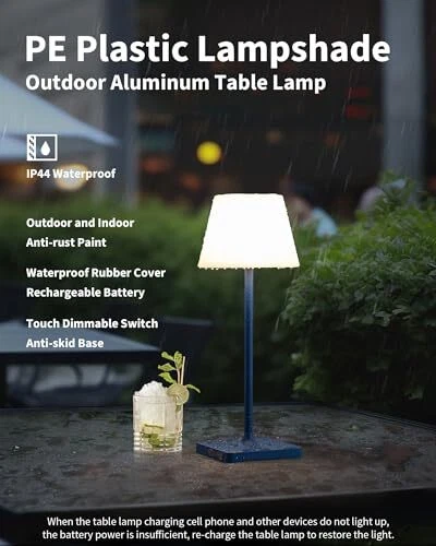 Menu 1. We require immediate payment. 2. We currently accept payment via eBay managed payments only. 3. Once payment is cleared, we will dispatch your shipment within 1-3 business days. Please refer to the "Shipping" tab for more information regarding shipping speed to your destination. Cordless Portable Touch Table Lamp Waterproof Set of 2, 4000mAh Rechargeable Battery Powered Dimmable LED Desk Lamps, Modern Baby Night Light for Bedroom, Restaurant, Bathroom, Bar (Blue 14.5") Product description Portable Cordless Design: The LED touch table lamp is elegantly designed with soft lighting, creating a cozy and romantic atmosp. It's medium weight and it fits in your hand, making it suitable for various occasions such as restaurants, bedrooms, bathroom, bars, outdoor gatherings, campsites, and cafes. This multi-functional, portable, waterproof cordless wireless desk lamp is an ideal choice. Touch Switch & Stepless Dimming: LED adjustable table lamp with reliable touch buttons on the lamp base, you can easily control the light on/off by tapping. Long press to change the brightness, adjustable from 10%-100%, provides 3W 2700K soft and cozy warm light, great for creating a sense of atmosp. Can be used for parenting, meditation, watching movies, etc. Suitable for all scenes and people of different ages to use home decor. Rechargable Battery Powered Table Lamp: Built-in 4000mAh rechargeable battery, charging time is 4-6 hours, 100% brightness mode can be used for about 8 hours, low brightness mode can last more than 24 hours. It turns RED when it is charged and turns GREEN when it is fully charged. battery powered lamp can charge your mobile phone at the same time in the charging state, it is recommended to charge your mobile phone when the table lamp is fully charged, if the table lamp power is too low it will turn off, you need to charge the table lamp to light up. IP44 Certification: IP44 certified PE plastic lamp, closed structure, rain and sun protection. Matte powder coated aluminum alloy body with delicate texture. Sturdy rubber protects the charging port from water sprays, so this waterproof light can be used as a shower light. Weighs 1.52 pounds and features a cordless design for easy mobility. The base includes a soft cushion to prevent tilting with the wind, making it an ideal table lamp for patios, restaurants, camping and more. Quality Service: Stylish Wireless LED Desk Lamp, suitable for self-use or gift for friends and family. If you have any questions after receiving the package, please feel free to contact us, we are happy to help you and give you a satisfactory solution. PLEASE MESSAGE US IF YOU HAVE ANY OTHER QUESTIONS, AND MANY THANKS FOR READING ALL OF THIS. Copyright ©#. All Rights Reserved.