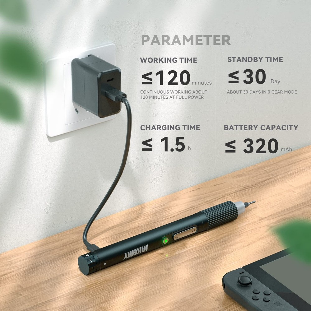 Cordless Screwdriver, 3 Gears Torque Adjustable Precison Screwdriver Set, Automatic and Manual Dual-mode, Shadowless LED Lamp, Phillips Flat Socket Torx Screwdriver Repair Tool Kit for Most Xbox, PSP, Console, Camera and PC Case, Etc ๐ This electric screwdriver is an adjustable torque screwdriver in 3 gears and supports manual mode. The aluminum alloy shell of the cordless screwdriver is electroplating process and the lamp of the small screwdriver is designed as a separate power switch. ๐ Our multipurpose screwdriver bit set ( HRC 52 to 63 ) using phosphating process, and the electric precision screwdriver set comes with phillips screwdriver bit(+1.0 to 3.5), flat screwdriver bit(-1.0 to 2.5), torx screwdriver bit(t6 to t10), socket screwdriver bit(G3.8 to G4.5) and 2 in 1 magnetizer. ๐ Shadowless LED light source design, soft and not dazzling. The computer screwdriver kit storage case adopts the withdrawable style design and has built-in a round hole for temporary placement of the computer screwdriver. And the computer repair kit makes it more convenient in assembly, disassembly and maintenance. ๐ The standby time of this cordless screwdriver rechargeable is about 30 days in 0 gear mode, the continuous working time of the power screwdriver is about 120 minutes at full power, the charging time of the electric screwdriver rechargeable is about 1.5 h. When the light of the screwdriver flashes red, it means it's ready to charge. ๐ Electric screwdriver is guaranteed for 365 days from the date of purchase. Please directly contact our after-sales team to solve through Amazon customer service due to the issues of cordless screwdriver quality or screwdriver set use or others.