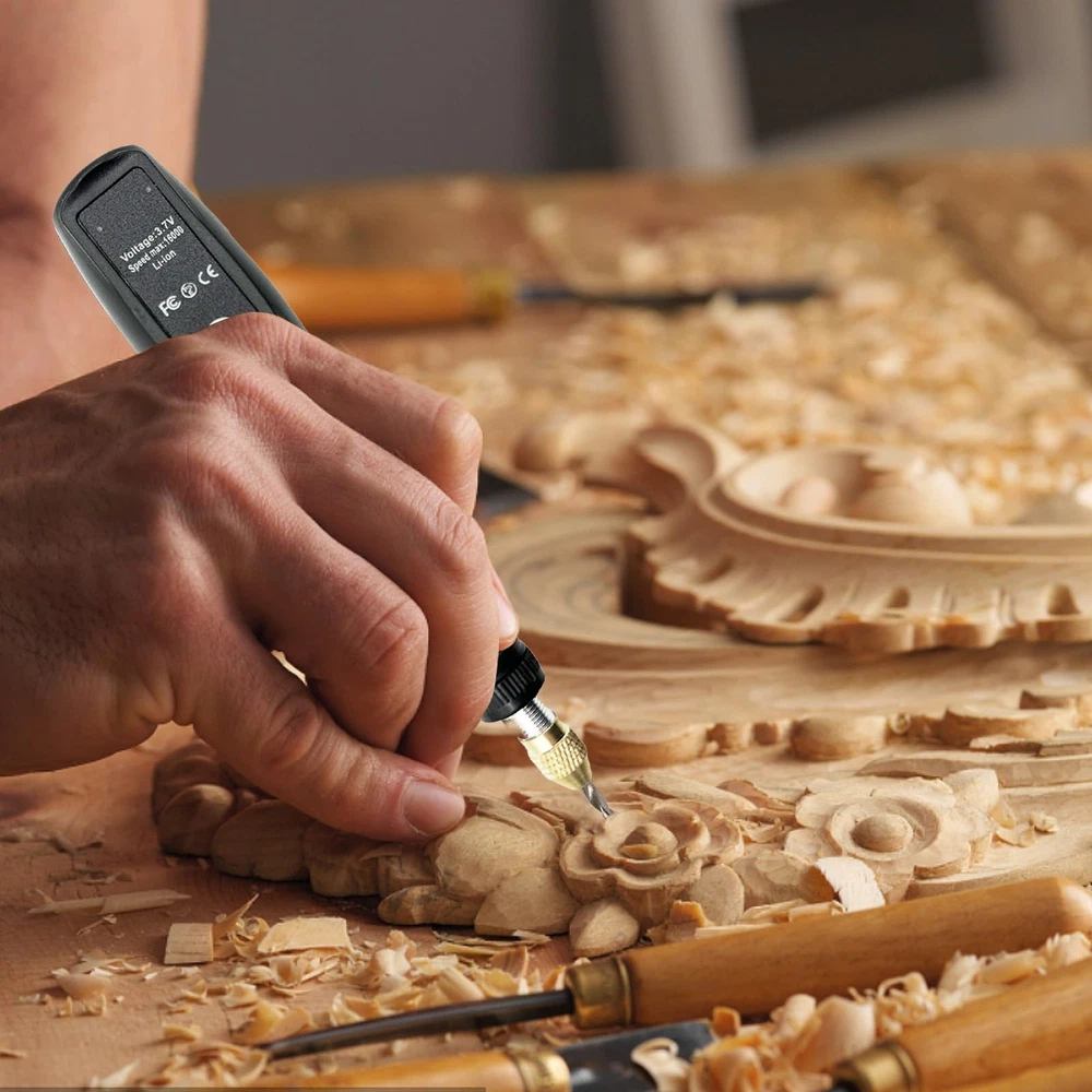 Technical specifications: Collet size: Φ3mm voltage: 3.7V Speed: 16000RPM Charging time: 2 hours Battery : lithium-ion, built-in Charger Voltage: 5V DC(USB) What's in the : 3.7V lithium-ion cordless drill / driver 1x user manual 1x USB connector 1x 42pcs kit Note: - It is recommended to check the power before this , and keep working at full power to avoid low battery during the work. - It is not recommended to operate heavy duty work. The cordless rotary tool perfect for DIY and small jobs, such as simple sanding, polishing, etc. 16000RPM SPEED ROTARY - Equipped with a speed model 16000rpm allows for safe and careful sanding in stages, even for beginners who can easily control the speed, convenient for creations, suit different DIY work situations. DIVERSITY ROTARY TOOL - With 42pcs kit including 20pcs sanding bands that can be used to do various types of home projects and crafting jobs such as sanding, grinding, carving, polishing and more. USB CONNECTOR FOR CONVENIENT CHARGE - Charging 2 hours for continuous work 90 mins, 3.7 V rechargeable lithium battery for safe operation and long life. COMPACT AND LIGHTWEIGHT - Powerful but small and light, just like holding a pen while in use, for ultimate control and precision as well as for comfort. QUIET - Compact motor is perfect for home use, more comfortable in your hand while the tool. ATTENTION - Different tool fit different collets. If the tool come off easily from the head of rotary tool, please replace a new collet to fit it.