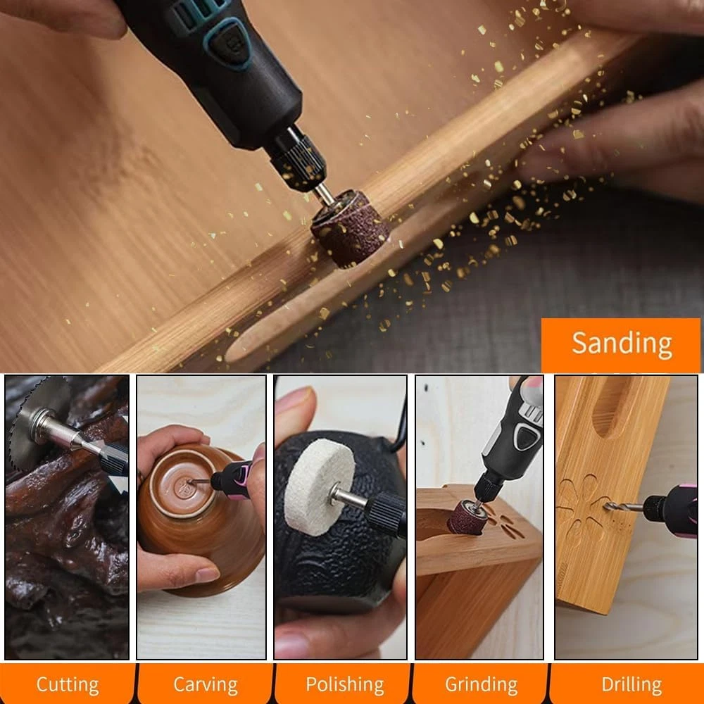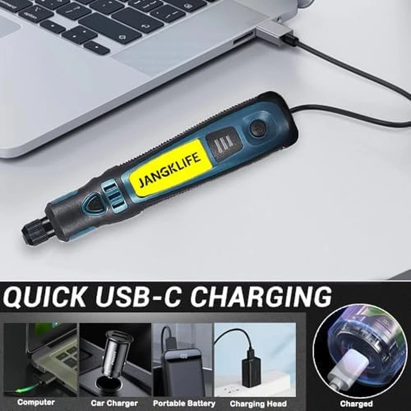【Multi-Function Rotary Tool Set】Our product features a high-performance rotary tool with 41 multi-function accessories. Suitable for fine work such as nail polishing and polishing, engraving, cutting, punching or DIY making tasks 【3-speed adjustable】Our products have 3-speed adjustable speed (5000/10000/15000RPM) to meet the power needs of different materials and tasks, and overload protection can make the work safer and more reliable, providing you with high-quality work environment. The small electric rotary tool is easy for beginners to use without any burden. 【Lightweight and Convenient】It is powerful but small and light, just like holding a pen when using it, making the operation more convenient, reducing fatigue during work, and bringing comfortable and precise operation. 【Longer Run Time & Fast USB Charging】Can be used multiple times on a single charge, our product is equipped with a 3.6V rechargeable battery to meet your daily work tasks. (Avoid charging for too long or overloading the work) 【Spindle lock】: The onboard spindle lock can quickly and easily replace the drill bit, and is strong and not easy to fall off, meeting the needs of different work tasks and making the operation more burden-free. Product Description 3-Speed Adjustable/USB Charging