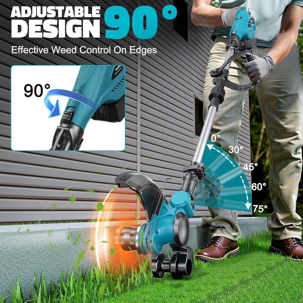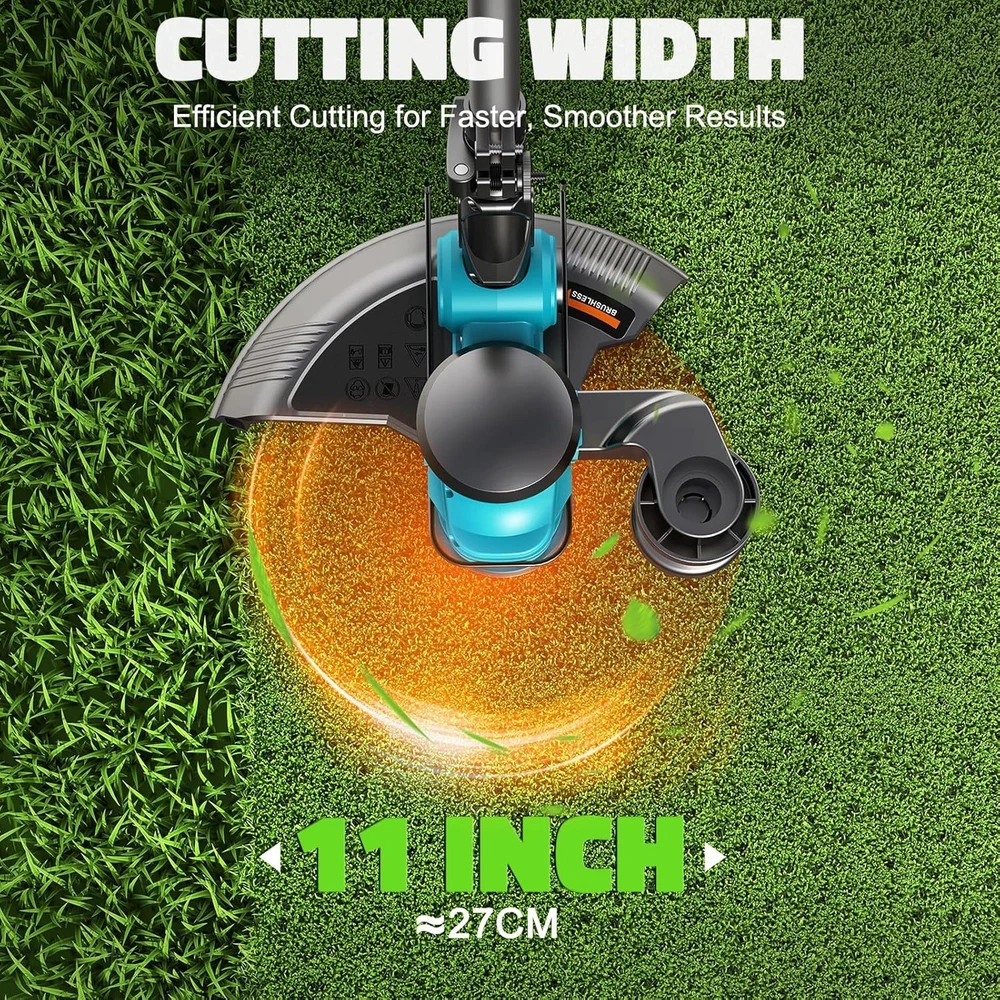 Product description Folding 3 in1 Weed Eater for Makita 18V Battery Adjustable height handles from to 50" to 60" The power display, allowing users to monitor remaining runtime. Features a brushless motor, which enhances efficiency, extends tool life. Note: It is not suitable for cutting larger-diameter shrubs or trees.