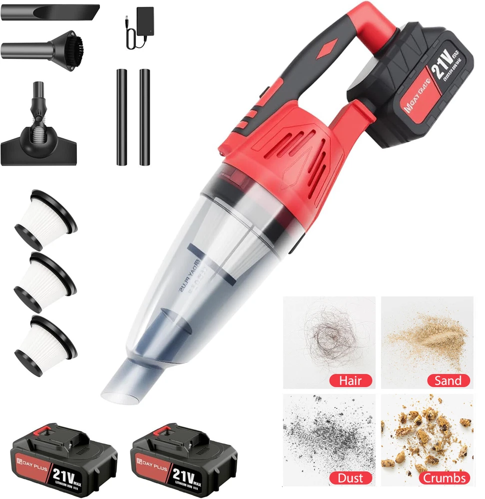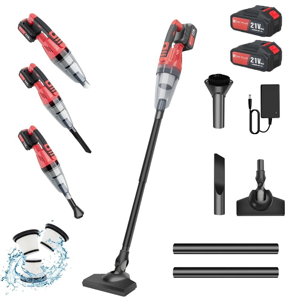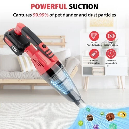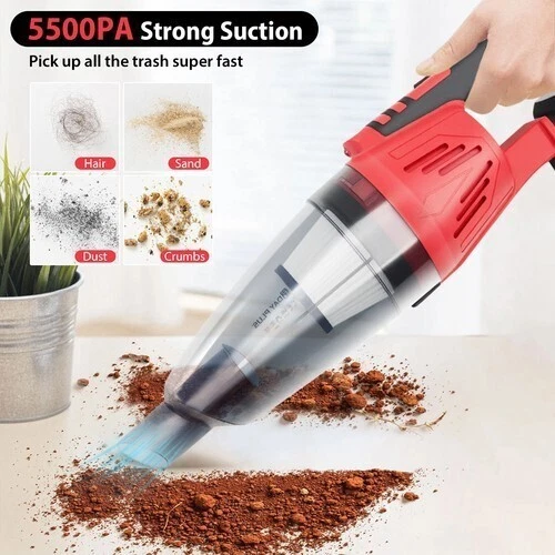 Specification: Name: Handheld Vacuum Cordless Colour: Red Collection container volume: 0.6L Size: 10.5x46.5cm/10.5x116cm Voltage: 21V Battery capacity: 2200MAH Rated power: 120W Package includes: 1x Handheld Vacuum Cordless 1x Brush Nozzle 1x Crevice Nozzle 1x Nozzle 2x Extension Tube 3x Washable Filters 1x chargers 1x Instruction Manual 2xBattery Cordless Vacuum Cleaner 3 in 1 Lightweight Stick Strong Suction LED Rechargeable Features: 1.Powerful Cleaning-Equipped with a powerful suction that provides a strong suction power of 5500Pa, this dual-purpose hoover is perfect for thorough cleaning of home interiors and car interiors, carpets and rugs, leather finishes, etc., effectively removing dust. 2.Designed to be easy to manoeuvre and time-saving, perfect for busy families looking for convenience. 3.Charging with USB connection, allowing you to charge easily at home or on the go. 4. Compact and Portable-Compact and lightweight design makes it easy to carry and store, even in tight spaces there is room for storage and placement. Specification: Name: Handheld Vacuum Cordless Colour: Red Collection container volume: 0.6L Size: 10.5x46.5cm/10.5x116cm Voltage: 21V Battery capacity: 2200MAH Rated power: 120W Package includes: 1x Handheld Vacuum Cordless 1x Brush Nozzle 1x Crevice Nozzle 1x Nozzle 2x Extension Tube 3x Washable Filters 1x chargers 1x Instruction Manual 2xBattery Precautions: 1. The filter must be installed when using it 2. Do not use it in direct sunlight and in places with high temperature and high pressure. 3. Do not wipe the body with gasoline or highly volatile decontamination agents 4. The front shell cannot be taken off when the motor is rotating 5. This product is a vehicle tool, and it is forbidden for children to use it alone to avoid danger. 6. Under normal conditions, it can usually be used for half an hour and has no effect on the battery. 7. After using this product, please turn off the switch; when the dirt and dust are removed from the machine, press the fastening buckle, and then drain the foreign objects. 8. When repairing this product, it should follow the requirements of the manual, and at the same time, the filter part of the product should be kept clean at all times. 9. This product is not a toy. Please do not let children play with it alone to avoid danger.At the same time, the product should be placed in a dry place. Reminder: Please do not let children play alone. This product is not a toy. Please do not suck burning foreign objects, such as unquenched cigarette butts. Payment Shipping Return Contact us About us Payment 1.Paypal, Credit Card, G Pay etc, many payment way is accepted. 2.Please be sure your shipping address is correct before make a payment. Shipping 1.We are shipping from multiple warehouses (Houston, Texas/ Corona, California) , please note before placing an order 2.We will ship out the item within 1-3 business days after comfirming the payment, appreciate your patience. 3.If the items are broken on the way( we will check the orders clearly before we sent them ),please contact us in 3 days you received it. We will send you a new one or refund your payment. Return 1.We stand behind every buyer.Items can be returned for exchange or refund within 30 days. 2.Please contact us when you have any confusion of our item, we will solve the trouble for you as soon as possible. Contact us 1.This is professional Seller.We will reply your message within 24 hours. 2.Please contact us whenever you have any question about the item. We will deal with it as soon as possible. 3. If you are unhappy with the item or our service,please Contact Us before leave feedback,just give me a chance,thank you! About us 1. Unless specified otherwise, all our products are IN STOCK and are shipped from Local warehouse - Not Overseas! 2. We provide a 30 day Satisfaction Guarantee or your money back (provided items are in the same new and resaleable condition.) 3. We have a PayPal Verified Business Account, please buy with Confidence! 4. Every item will be tesrted before send.We know our products well and if we don't have the answers we will do our best to find them for you! 5. Our friendly team look forward to serving you! Your satisfaction is our No.1 Priority We will do our best to satisfacy you.