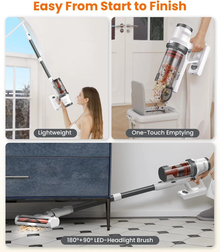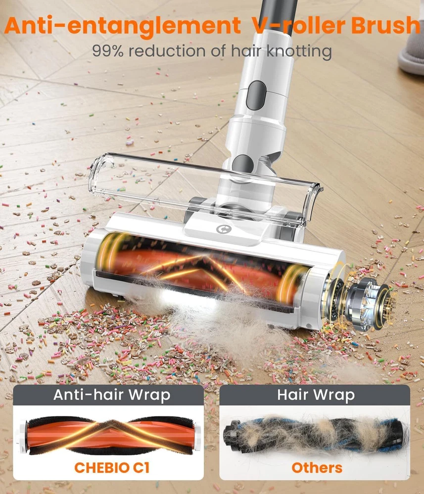 Cordless Vacuum Cleaner, 30Kpa Cleaners for Home, Max 50 Mins Gray Product Details Brand: CHEBIO Special Feature: 30000Pa powerful suction, Up to 50 mins Runtime, Tangle Resistant, 5-stage high-efficiency filtration, Lightweight and versatile vacuum Filter Type: HEPA Filter Included Components: 1 x C1 Cordless Vacuum Cleaner, 1 x Manual Instructions, 1 x Short Brush Head, 1 x Long Crevice Nozzle, 1 x Hair Cleaning Tool, 1 x Wall Mount Plate, 1 x Replaceable HEPA filter Is Cordless?: Yes Capacity: 1.5 Liters Wattage: 150 watts Runtime: 50 minutes Maximum Suction: 7.35 Inches Recommended Uses For Product: Vacuum Cleaners for Home Form Factor: Stick Color: Gray Model Name: C1-01 Product Dimensions: 11"L x 9"W x 43"H Battery Description: Lithium-Ion" or "Lithium Noise Level: 62 dB Battery Life: 50 minutes Manufacturer: CHEBIO Number of Items: 1 Controller Type: Hand Control Motor Horsepower: 201 horsepower Control Method: Touch Style: Minimalist Gray Portable: Yes Number of Handles: 1 Number of Power Levels: 1 Series Number: 1 Indoor/Outdoor Usage: Indoor Manufacture Year: 2024 Item Weight: 7 pounds Item model number: C1-01 Batteries: 1 Lithium Ion batteries required. (included) Batteries required: Yes Battery type: Lithium-Ion" or "Lithium Special Feature: 30000Pa powerful suction, Up to 50 mins Runtime, Tangle Resistant, 5-stage high-efficiency filtration, Lightweight and versatile vacuum 30000Pa powerful suction, Up to 50 mins Runtime, Tangle Resistant, 5-stage high-efficiency filtration, Lightweight and versatile vacuum30000Pa powerful suction, Up to 50 mins Runtime, Tangle Resistant, 5-stage high-efficiency filtration, Lightweight and versatile vacuum See more Included Components: 1 x C1 Cordless Vacuum Cleaner, 1 x Manual Instructions, 1 x Short Brush Head, 1 x Long Crevice Nozzle, 1 x Hair Cleaning Tool, 1 x Wall Mount Plate, 1 x Replaceable HEPA filter 1 x C1 Cordless Vacuum Cleaner, 1 x Manual Instructions, 1 x Short Brush Head, 1 x Long Crevice Nozzle, 1 x Hair Cleaning Tool, 1 x Wall Mount Plate, 1 x Replaceable HEPA filter1 x C1 Cordless Vacuum Cleaner, 1 x Manual Instructions, 1 x Short Brush Head, 1 x Long Crevice Nozzle, 1 x Hair Cleaning Tool, 1 x Wall Mount Plate, 1 x Replaceable HEPA filter See more Surface RecommendationPower Source: All floorsBattery Powered VoltageItem Weight: 22.2 Volts7 Pounds [ ] Cordless vacuum cleaner boasts a strong 30Kpa suction power, achieving 99.7% cleaning performance on hardwood floors and tiles. Say goodbye to tiny particles, pet hair, and debris. Experience a level of cleanliness like never before [- , -] Vacuum features an upgraded V-shaped anti-tangle roller brush that helps you clean faster and easier. No more wasting time untangling hair from the brush—enjoy hassle-free cleaning like never before [ , ] Vacuum cleaner equipped with a high-capacity, removable battery, stick vacuum offers extended cleaning time by 35%, up to 50 minutes (on the lowest suction setting). Additionally, the removable battery design allows for convenient separate charging [ ] Cordless stick vacuum cleaner is lightweight and cordless, making it easy to maneuver and use for extended periods without fatigue. It comes with a long crevice tool and dusting brush, allowing for deep cleaning of curtains, beds, sofas, and any hard-to-reach areas [* - ] If you have any questions, please feel free to contact us. We will resolve your stick vacuum cordless rechargeable issues within 24 hours. Additionally, if you need accessories, just leave us a message. We are always here to help