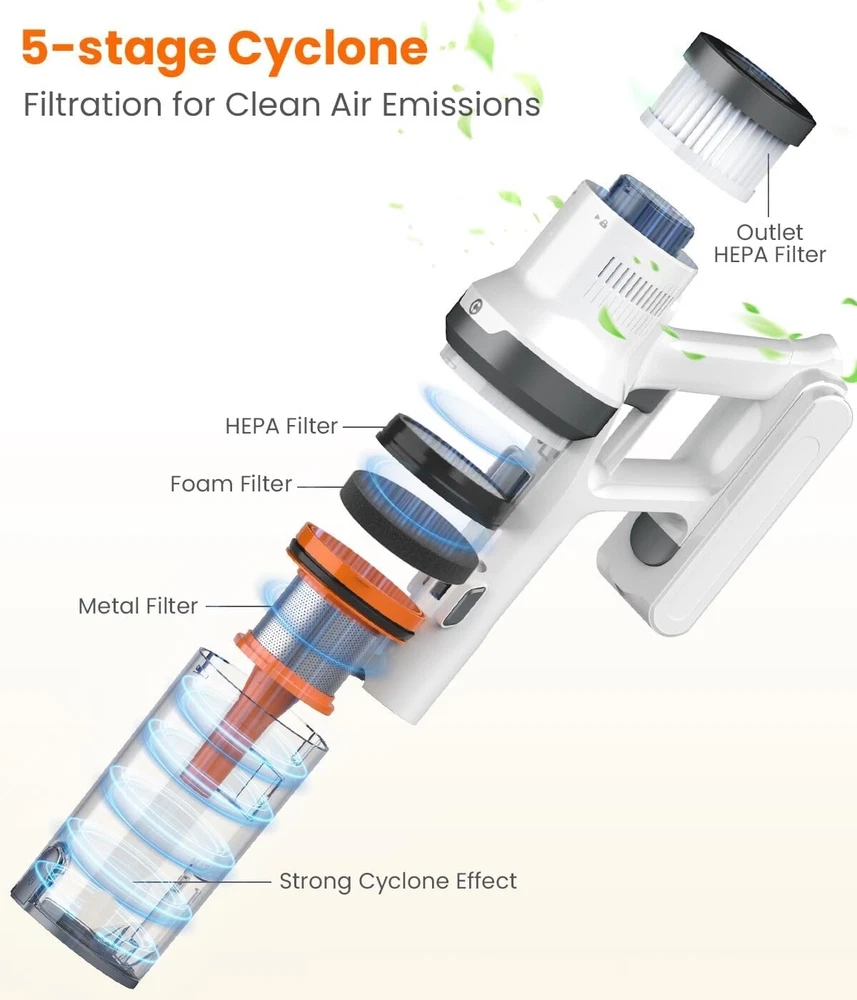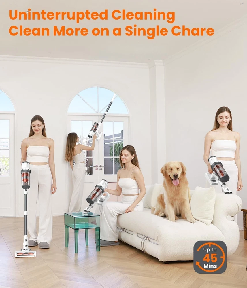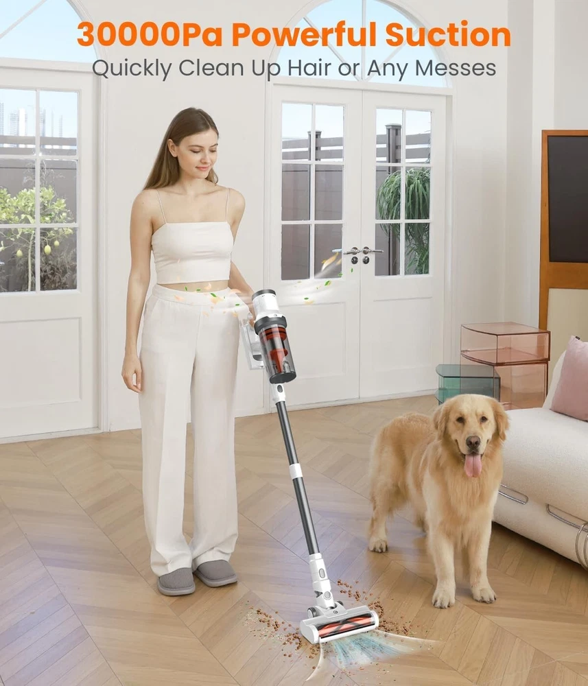 Cordless Vacuum Cleaner, 30Kpa Vacuum Cleaners for Home, Max 45 Mins Runtime, Anti-Tangled Stick Vacuum, Lightweight Vacuum for Carpet, Hard Floor [๐๐จ๐ฐ๐๐ซ๐๐ฎ๐ฅ ๐๐ฎ๐๐ญ๐ข๐จ๐ง ๐๐จ๐ซ ๐๐๐๐ข๐๐ข๐๐ง๐ญ ๐๐ฅ๐๐๐ง๐ข๐ง๐ ] Cordless vacuum cleaner boasts a strong 30Kpa suction power, achieving cleaning performance on hardwood floors and tiles. Say goodbye to tiny particles, pet hair, and debris. Experience a level of cleanliness like never before [๐๐ง๐ญ๐ข-๐๐๐ง๐ ๐ฅ๐ ๐๐๐๐ฎ๐ฎ๐ฆ, ๐๐ข๐ฆ๐-๐๐๐ฏ๐๐ซ] Vacuum features an upgraded V-shaped anti-tangle roller brush that helps you clean faster and easier. No more wasting time untangling hair from the brushโenjoy hassle-free cleaning like never before [๐๐จ๐ง๐ ๐๐ฎ๐ง๐ญ๐ข๐ฆ๐, ๐๐๐ฌ๐ฌ ๐๐ง๐ญ๐๐ซ๐ซ๐ฎ๐ฉ๐ญ๐ข๐จ๐ง] Vacuum cleaner equipped with a high-capacity, removable battery, stick vacuum offers extended cleaning time by 35%, up to 45 minutes (on the lowest suction setting). Additionally, the removable battery design allows for convenient separate charging [๐-๐๐ญ๐๐ ๐ ๐๐ข๐ ๐ก-๐๐๐๐ข๐๐ข๐๐ง๐๐ฒ ๐ ๐ข๐ฅ๐ญ๐ซ๐๐ญ๐ข๐จ๐ง] Cordless vacuum features a five-cone dust separation system that effectively captures of small dust particles, releasing purified air. It also includes a fully detachable, washable, one-button empty dustbin [๐๐ข๐ ๐ก๐ญ๐ฐ๐๐ข๐ ๐ก๐ญ ๐๐ง๐ ๐๐๐ซ๐ฌ๐๐ญ๐ข๐ฅ๐ ๐๐๐๐ฎ๐ฎ๐ฆ] Cordless stick vacuum cleaner is lightweight and cordless, making it easy to maneuver and use for extended periods without fatigue. It comes with a long crevice tool and dusting brush, allowing for deep cleaning of curtains, beds, sofas, and any hard-to-reach areas [๐*๐๐ ๐๐ง๐ฅ๐ข๐ง๐ ๐๐๐ญ๐๐ซ-๐๐๐ฅ๐๐ฌ ๐๐ฎ๐ฉ๐ฉ๐จ๐ซ๐ญ] If you have any questions, please feel free to contact me. We will resolve your stick vacuum cordless rechargeable issues within 24 hours. Additionally, if you need accessories, just leave us a message. We are always here to help