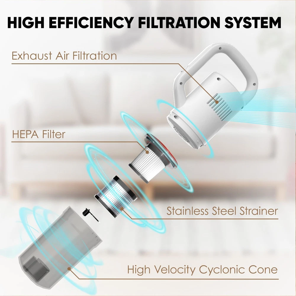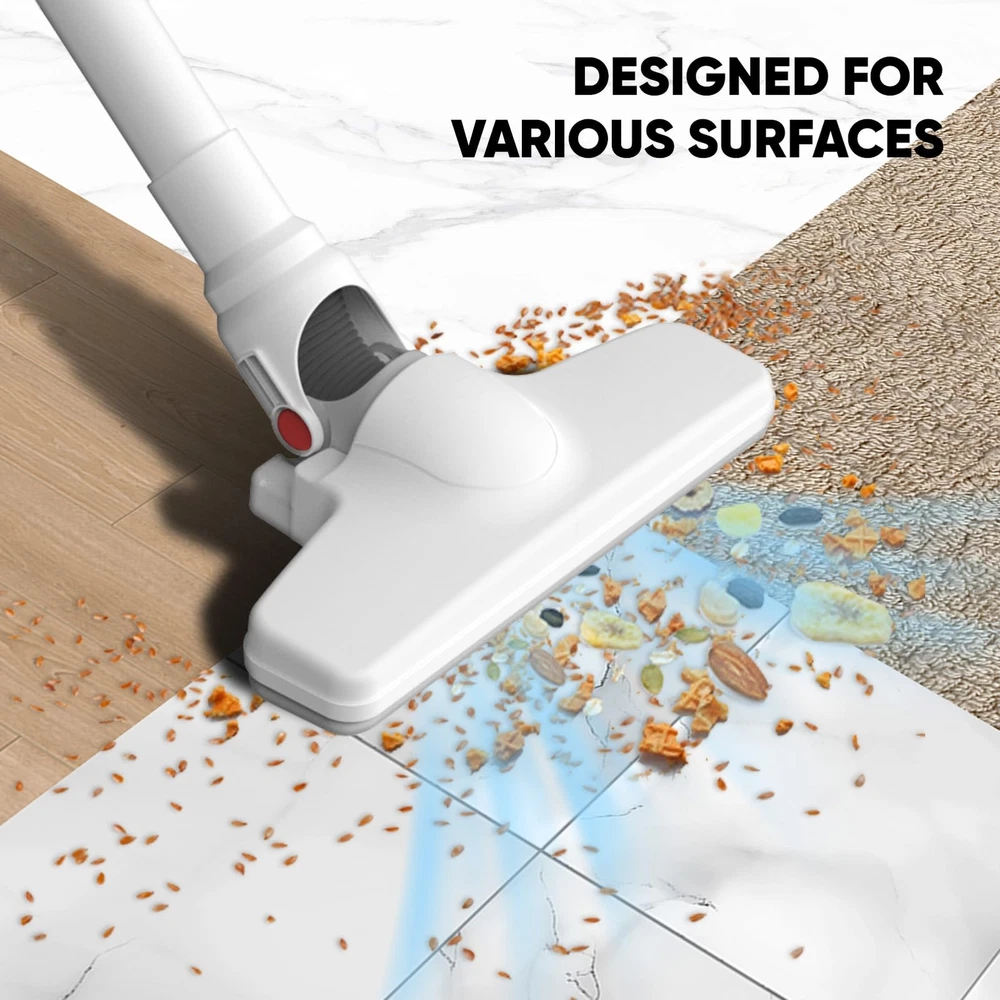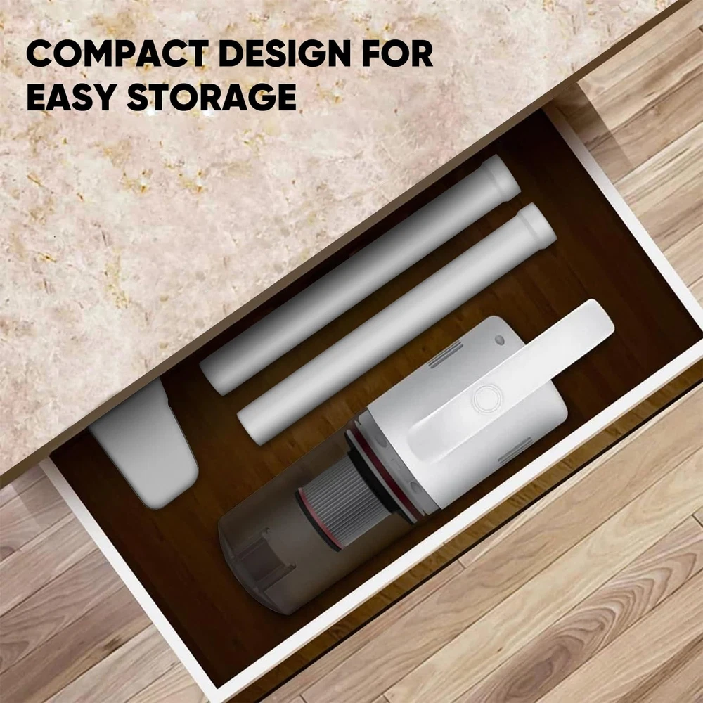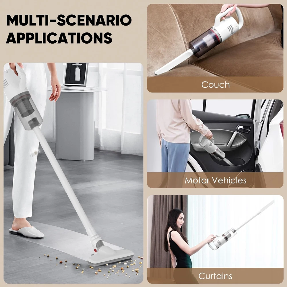 Lightweight Design: The main vacuum weights in at a mere 3 pounds, our cordless vacuum cleaner is designed for basic handling. Its lightweight build ensures comfortable operation, allowing you to easily clean around your home Design for Basic Small Room Cleaning: Whether it's pet hair, human hair, or everyday household dirts, this vacuum cleaner is ok to clean them. It is better to use it with the small room cleaning Multi-Scene Adaptability: From floors to curtains, and even car interiors, this vacuum cleaner is your all-in-one cleaning solution. Its versatility knows no bounds, making it the companion for tackling various cleaning scenarios.Note: it is not suitable for the long carpet Extended Runtime: With 4 hour charging time, you can enjoy up to 15 minutes of high-power mode or 30 minutes of low-power mode operation around. Choose the setting that suits your cleaning needs Versatile Attachments: Equipped with a crevice tool and a floor brush, our vacuum cleaner can transforms from a stick vacuum to a handheld vacuum. This adaptability ensures that you can reach tight spaces and clean various surfaces(not include the long carpet)