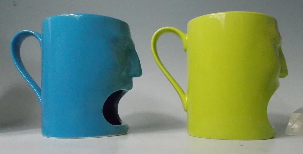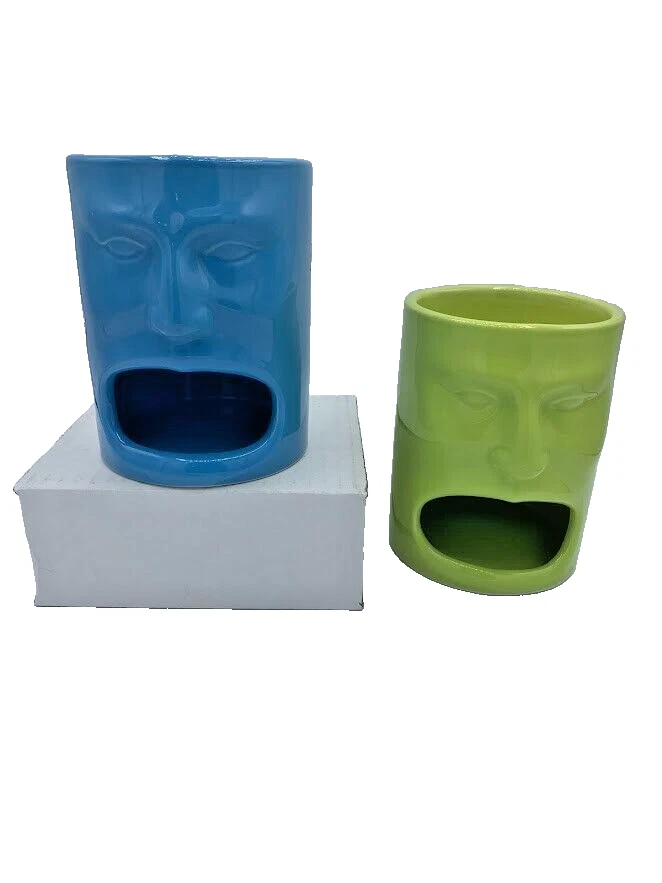 Perfect for milk & cookies! Enjoy your morning coffee or tea in style with this set of two Cordon Bleu Tiki Face coffee cups. These retired open mouth cookie holder mugs feature a solid Blue and Green color and are perfect for any occasion, especially retirement. The mugs are microwave, dishwasher, and oven-safe, making them convenient for everyday use. Measuring 5 inches in height and 4 inches in width, these mugs are the perfect size for your favorite hot or cold beverage. The set includes two coffee cups and is a great addition to your kitchen and home collection. Add these mugs to your dinnerware and serve ware collection or display them as a collectible. We add to our store regularly, Please "follow" us to check out all of the cool treasures we find during our shopping excursions. Thank you so much! https://www.ebay.com/str/pennywhistles