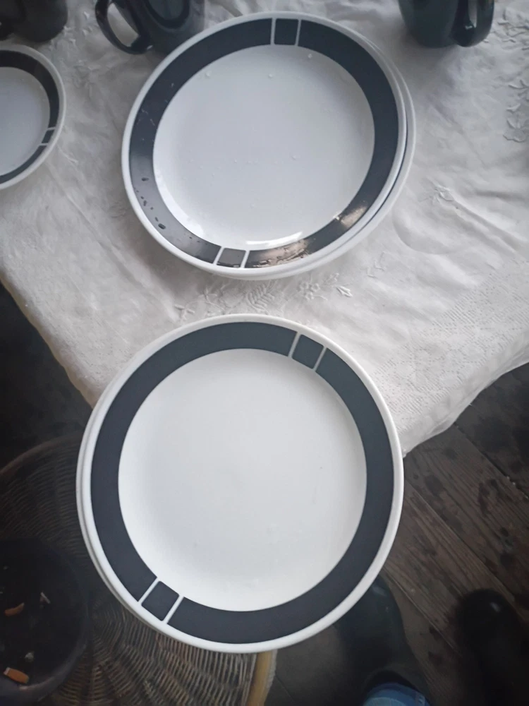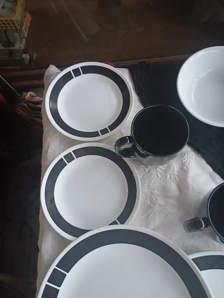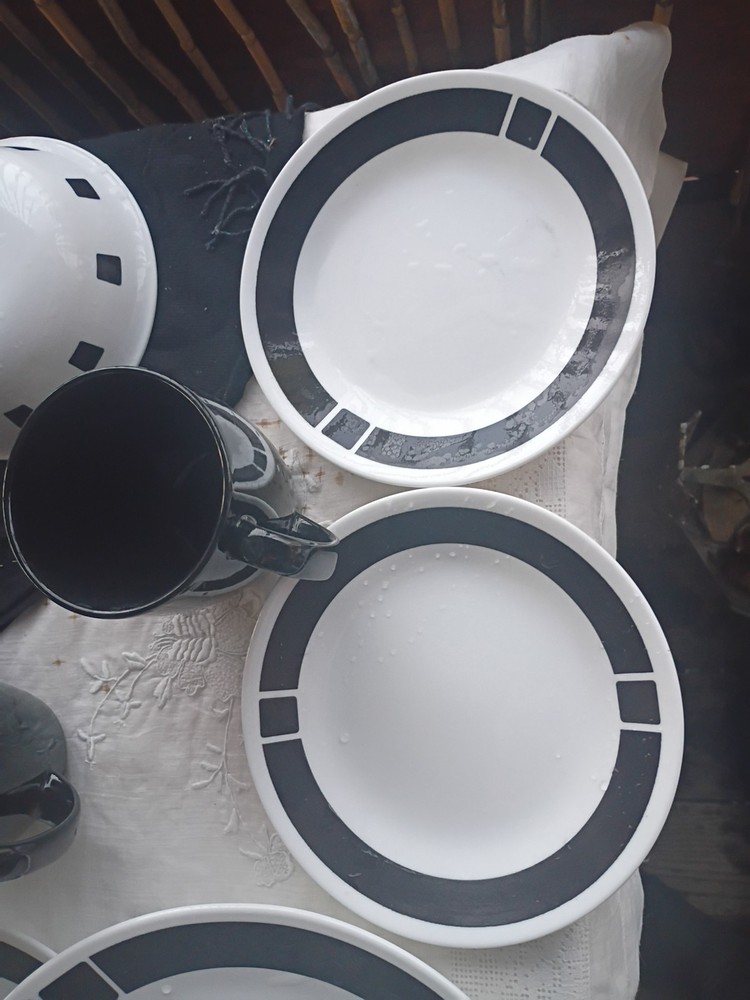 The Corelle Urban Black Set of 16 pieces is a stylish and versatile dinnerware collection perfect for serving meals to a group of four people. The set features a modern urban black pattern on a white background, adding a contemporary touch to your dining table. Made of durable glass material with a shiny finish, this set is both practical and eye-catching. Ideal for all occasions, this original set from 2007 is sure to elevate your dining experience with its sleek design and quality construction.