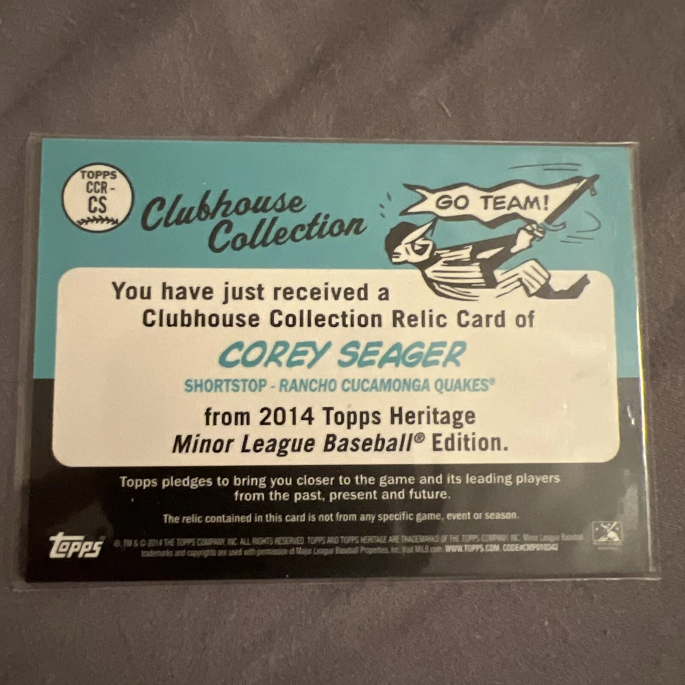This is a unique piece of sports memorabilia featuring Corey Seager, a player for the Rancho Cucamonga Quakes and Los Angeles Dodgers. The card is from the 2014 Topps Heritage Minor League series and includes a game-used patch. It is an original, licensed reprint and is perfect for any baseball fan or collector. The card is ungraded and is a single item, not part of a set. The era of the card is modern, dating back to 1981 and the manufacturer is Topps. The card is categorized under Trading Card Singles, Sports Trading Cards, and Sports Mem, Cards & Fan Shop. This item is a must-have for fans of Corey Seager and the Rancho Cucamonga Quakes/Los Angeles Dodgers.