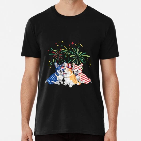 Corgi Dog 4Th Of July American Flag Great Gift Idea Premium T-Shirt S-5XL