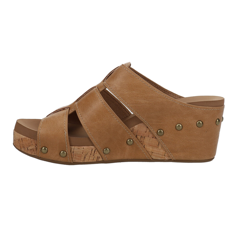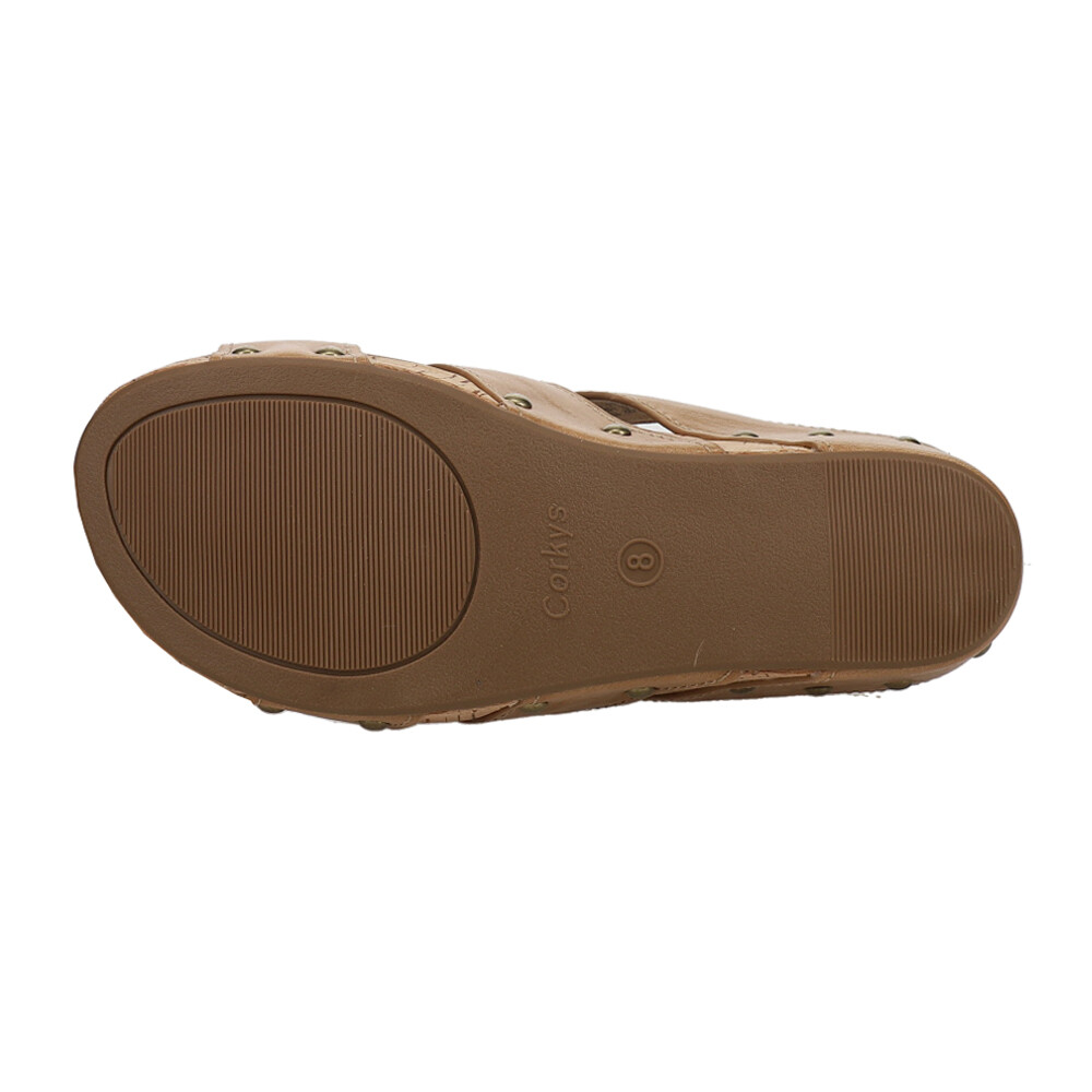 Catch of the Day Studded Wedge Sandals Product Details Faux leather upper Slip on Padded insole for extra comfort Rubber outsole These are the sandals we have been waiting for! These Catch of the Day are going to be perfect for a night out and give your outfit that extra bling! Additional Details Color: Brown Occasion: Casual Gender: Womens Age: Adult Brand: Corkys