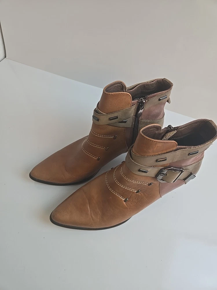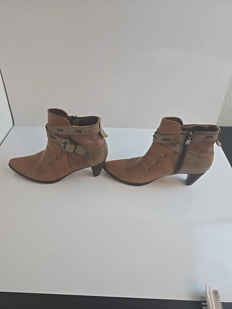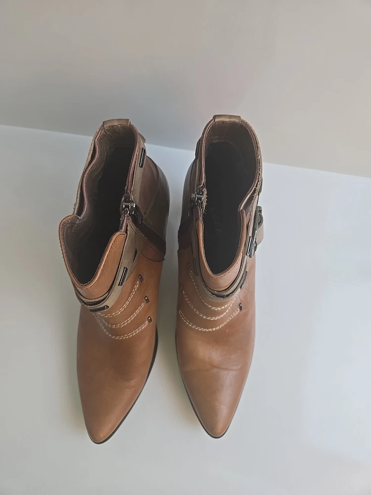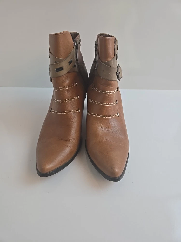 Step up your shoe game with these stunning Corkys ELITE Antelope Booties in a beautiful honey brown color. These ankle boots feature a pointed toe, mid heel with a cone style, and an adjustable strap for a comfortable fit. The booties are perfect for fall and winter and can be dressed up or down for a versatile look. The leather upper material is accented with stylish studded patches, giving the boots a unique and edgy touch. The Corkys ANTELOPE model is a must-have for any fashion-forward woman. Don't miss out on this opportunity to own a high-quality pair of boots from the Corkys product line.