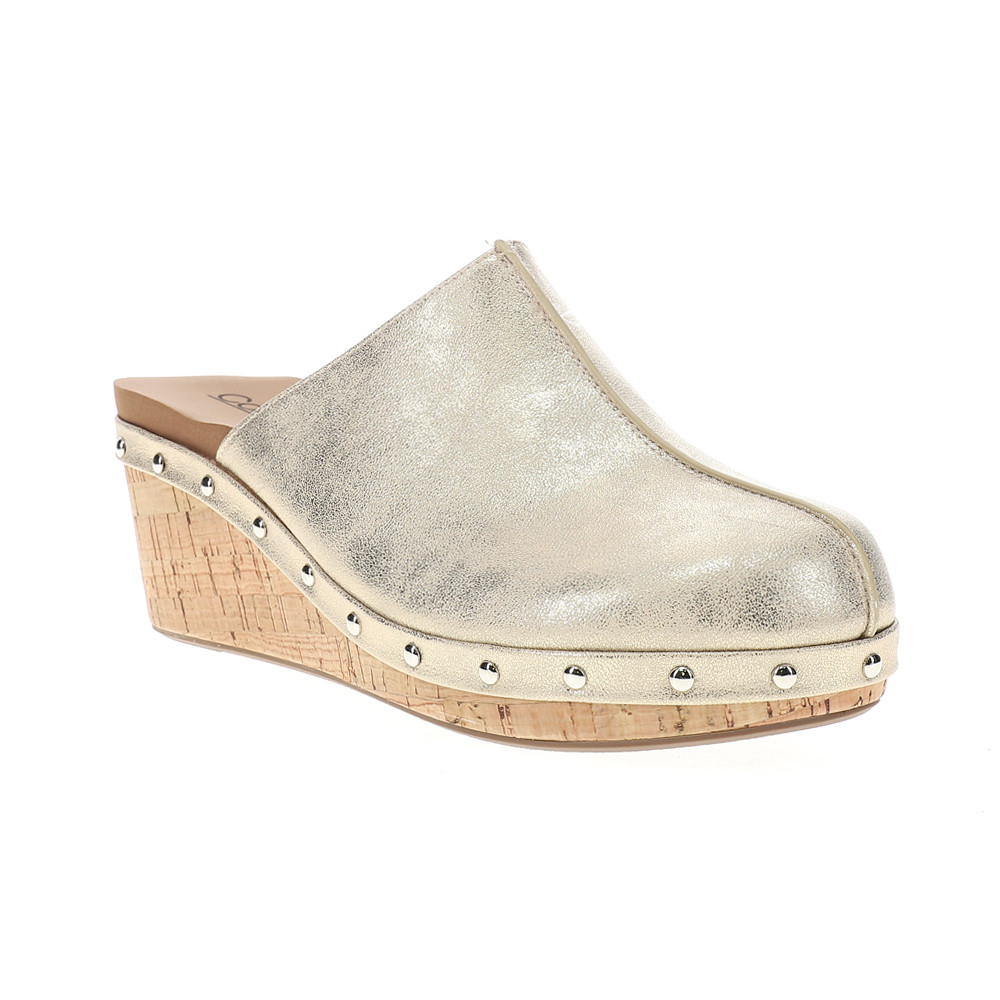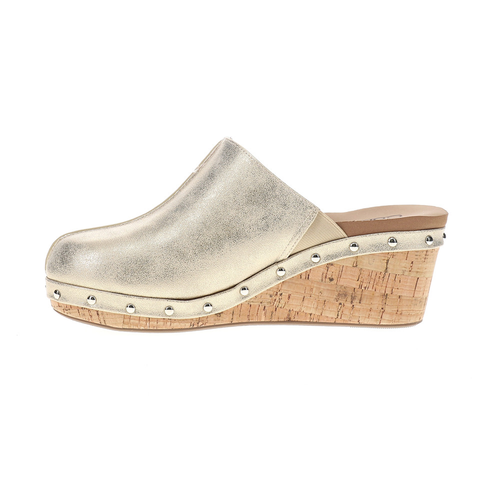 Marley Metallic Studded Mule Clogs Product Details Leather upper Slip on entry Cushioned footbed Cork wedge Rubber outsole Introducing the Corkys Marley Shoes, our most anticipated style! Elevate your style with the clog wedge and stay comfortable all day with Corkys foam. Add these shoes to your wardrobe for a fashionable and functional touch. Additional Details Color: Gold Occasion: Casual Gender: Womens Age: Adult Brand: