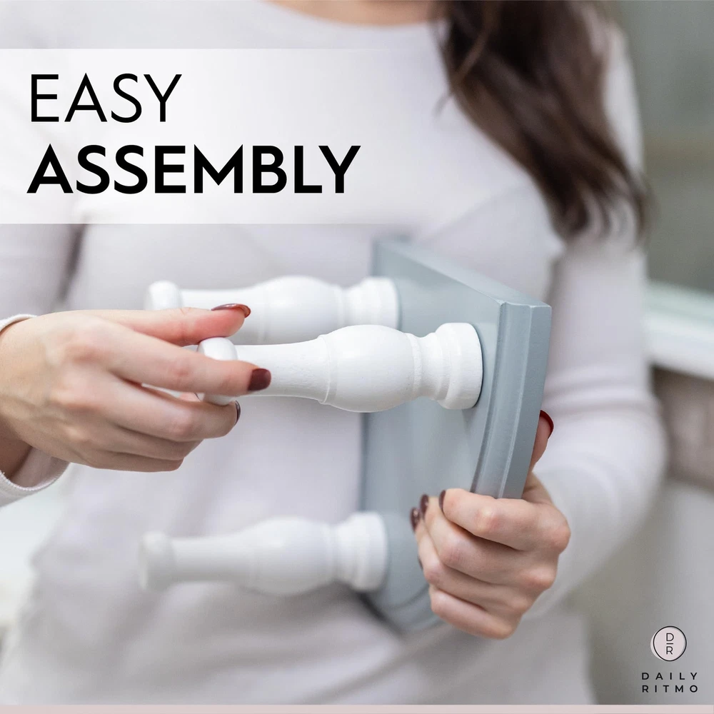 ✅ GREY WOOD CORNER SHELF 2PC SET: Perfect for organizing spice jars, toiletries & more, this home decorating bundle includes a pair of stackable corner shelves (one with 2" round feet, one with 5.5" brown spindle legs). ✅ MOSTLY PRE-ASSEMBLED; EASY DIY: Assembling the 8” deep shelving units couldn’t be easier. Since the wood shelves are already pre-assembled for the most part, all you’ll have to do is screw in the legs. Quick & easy DIY. The shelving set includes 2 top pieces, 1 set (3pc) of 2" ball legs and 1 set of 5" legs (3pc). ✅ CRAFTED OUT OF SOLID RUBBER WOOD: Both carved out of solid exotic rubber wood, these wooden bathroom counter shelves are strong, study, durable & easy to wipe clean. No frail, flimsy plastic. No metal accents to worry about rusting. ✅ MODERN FARMHOUSE CHIC FINISH: The top & bottom footed riser shelves in this kit have both been dressed up with a grey finish for an clean modern effect. Pair them with farmhouse décor, primitive décor, etc. ✅ ALL PURPOSE WOOD CORNER SHELVES: Each having a 15lb capacity, our stacking corner shelves can be used to organize & decoratively display skincare products, cooking spices, toiletries, coffee bar supplies & more.