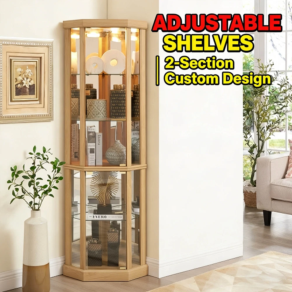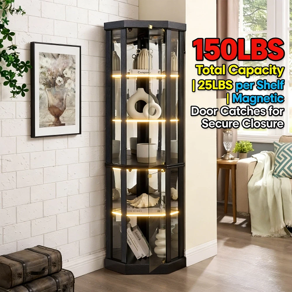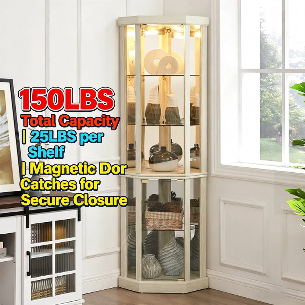 Corner Lighted Curio Cabinet - Glass Display Case for Antiques, Wine & More (5 Color Options) ✨ Transform Empty Corners into Stunning Showcase Spaces ✨ Tired of wasted corner space? Our Corner Lighted Curio Cabinet turns overlooked nooks into elegant focal points! Designed with timeless American style, built-in lighting, and mirrored back panels, this cabinet is perfect for displaying antiques, wine, bar glasses, or cherished collectibles. Available in five versatile colors, it seamlessly blends with any living room, bar, or dining area decor—combining functionality with sophisticated charm. 🎨 Choose Your Ideal Finish Dark Cherry Rich, warm, and classic—Dark Cherry adds a touch of traditional elegance to formal living rooms or dining spaces. It pairs beautifully with dark wood furniture and vintage decor. Antique White Soft, timeless, and versatile—Antique White brings a cozy farmhouse or cottage vibe. It brightens spaces and complements pastels, neutrals, and floral accents. Light Oak Airy, natural, and fresh—Light Oak suits coastal, Scandinavian, or casual styles. It adds warmth without overwhelming light-colored walls and furniture. Black Sleek, modern, and bold—Black creates a striking contrast in contemporary or industrial spaces. It makes your collectibles stand out and pairs with any accent color. Dark Oak Deep, earthy, and rugged—Dark Oak offers a rustic yet refined look, perfect for cabin-style or transitional homes. It blends with leather furniture and natural textures. 🔍 Key Specifications (All Colors) Category Details Assembled Dimensions (L×W×H) 16.50” × 16.50” × 69.85” (corner-fitting design) Assembled Weight 63.14 lbs Package Dimensions (L×W×H) 43.30” × 20.47” × 9.45” Package Weight 71.06 lbs Material High-Quality MDF + Clear Glass Weight Capacity 150 lbs total | 25 lbs per shelf Special Features Built-in Lighting + Mirrored Back Panels + Adjustable Shelves + Magnetic Door Catches 🌟 Why This Curio Cabinet Steals the Show Timeless American Classical Design: Soft, curved silhouettes and smooth lines create a serene, elegant look that enhances any interior. It adds a gentle touch to your space while letting your collectibles take center stage. Built-in Lighting for Dramatic Display: Included light illuminates your treasures with radiant brilliance, making antiques, crystal, or wine glasses shine. Mirrored back panels amplify the light and depth, creating a stunning visual effect that draws the eye. Customizable Display Space: Two side-hung glass doors open to a cabinet divided into two sections, with adjustable shelves. Personalize the layout to fit tall wine bottles, large antiques, or small trinkets—maximizing every inch of space. Sturdy & Secure Storage: With a 150-lb total weight capacity (25 lbs per shelf), this cabinet safely holds your valuables. Magnetic door catches ensure the glass doors close securely, keeping dust out and your items protected. Corner-Saving Design: Perfect for small or large spaces, the compact 16.5”×16.5” footprint fits neatly into corners, turning unused areas into functional, beautiful showcases. Ideal for living rooms, bars, dining rooms, or offices. Important Assembly Tip: Before assembling, please remove the protective film from the back panel to ensure the mirrored surface looks its best and functions properly. Our Promise to You: 1-Year Quality Warranty + 30-Day Free Return/Exchange. If you encounter any issues with your curio cabinet—whether it’s assembly, damage, or fit—our dedicated customer service team is here to assist you promptly and hassle-free. Turn empty corners into conversation pieces and give your cherished items the showcase they deserve. Choose your favorite color (Dark Cherry, Antique White, Light Oak, Black, or Dark Oak) and add to cart today—your space will thank you!