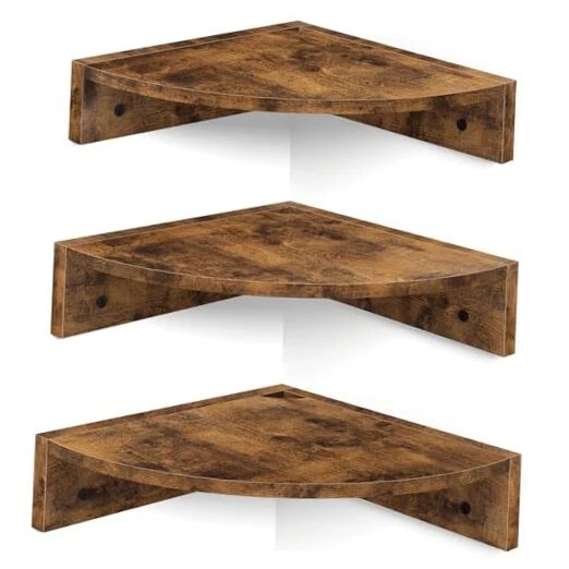 Corner Shelf Wall Mount, Set of 3 Floating Corner Shelves with Cord Brown